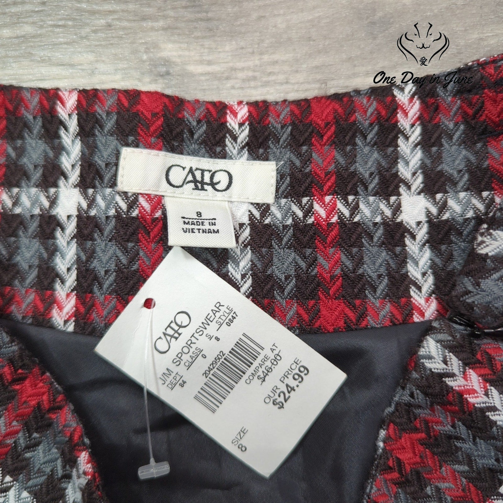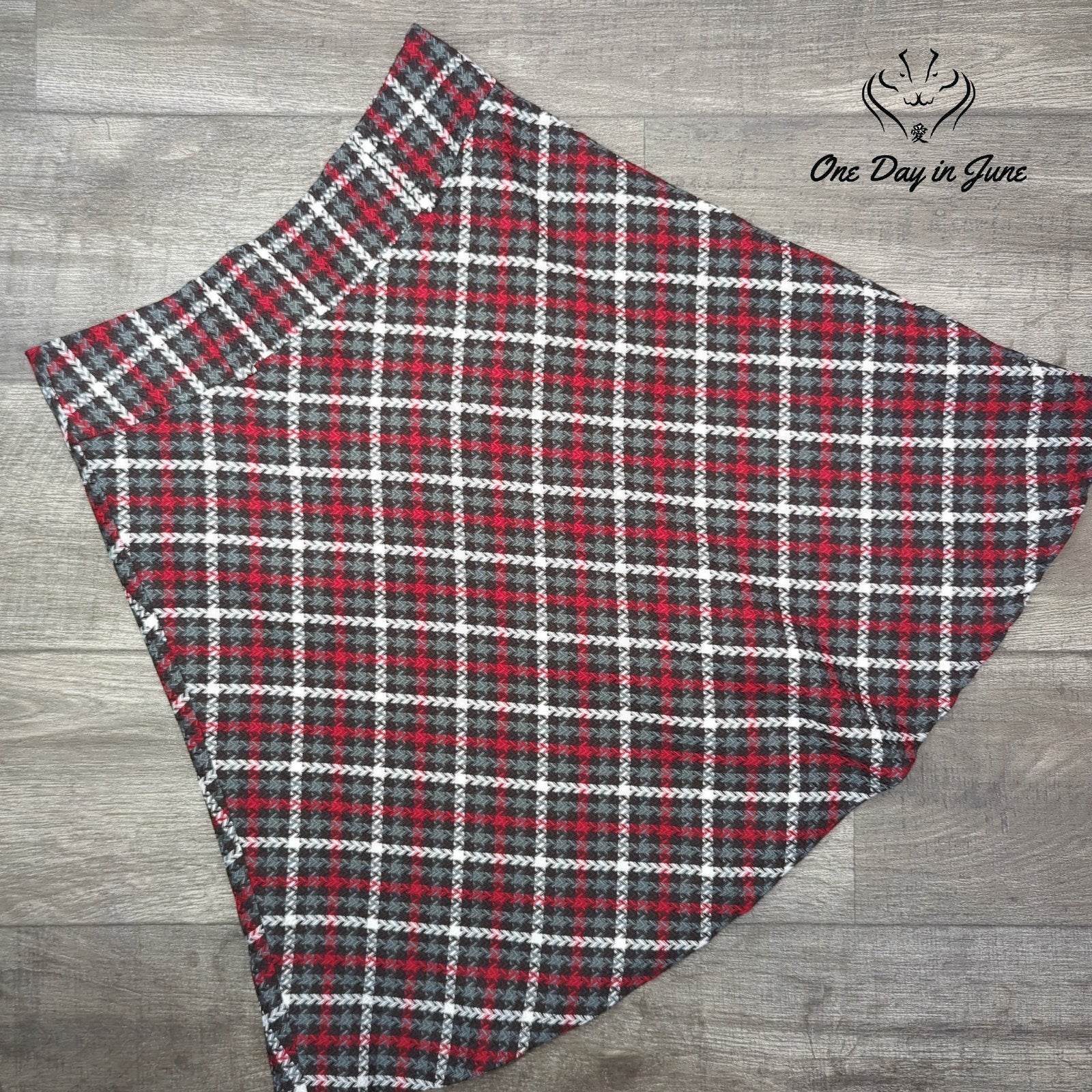 The sinister allure of this Cato A-line skirt beckons like a siren's call, its black and red hues swirling in a hypnotic dance of darkness and passion. It's a garment that whispers secrets of untold adventures, promising to transform any mundane outing into a fever dream of style and sophistication, all while maintaining an air of mystery that would make even the most jaded fashion aficionado weep with envy.
