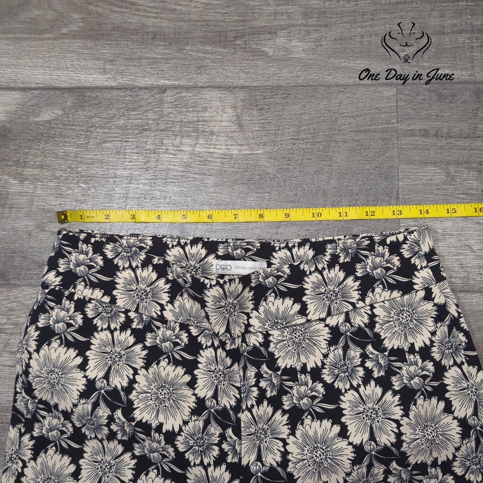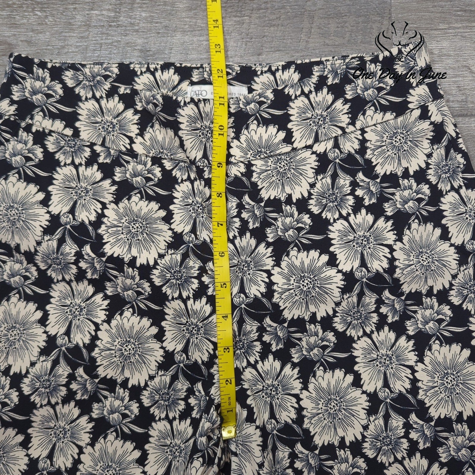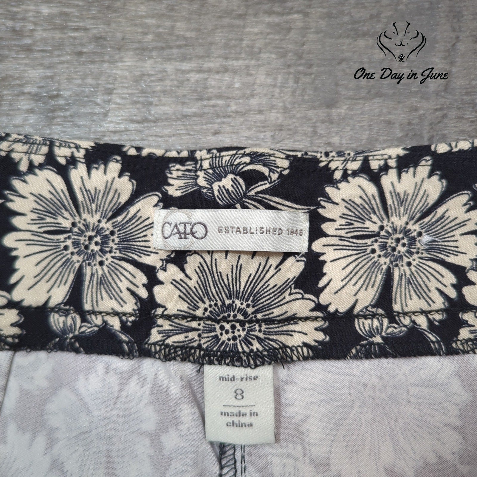 These enchanting floral pants from Cato are a delightful addition to any lady's wardrobe. With their high waist and elegant black hue, they offer both comfort and sophistication, sure to turn heads at any gathering. Crafted from a blend of rayon, nylon, and spandex, these trousers are as practical as they are charming, suitable for a variety of occasions.