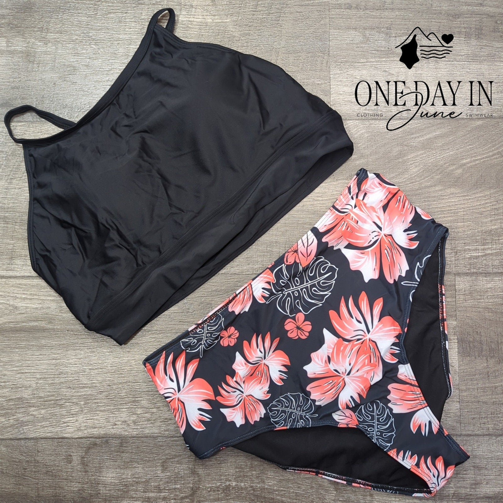 This splendid swimsuit set is quite the treat, with a crop top and high waist that simply can't be beat! In classic black it's oh-so-chic, perfect for the beach-bound fashionista who's wonderfully unique.