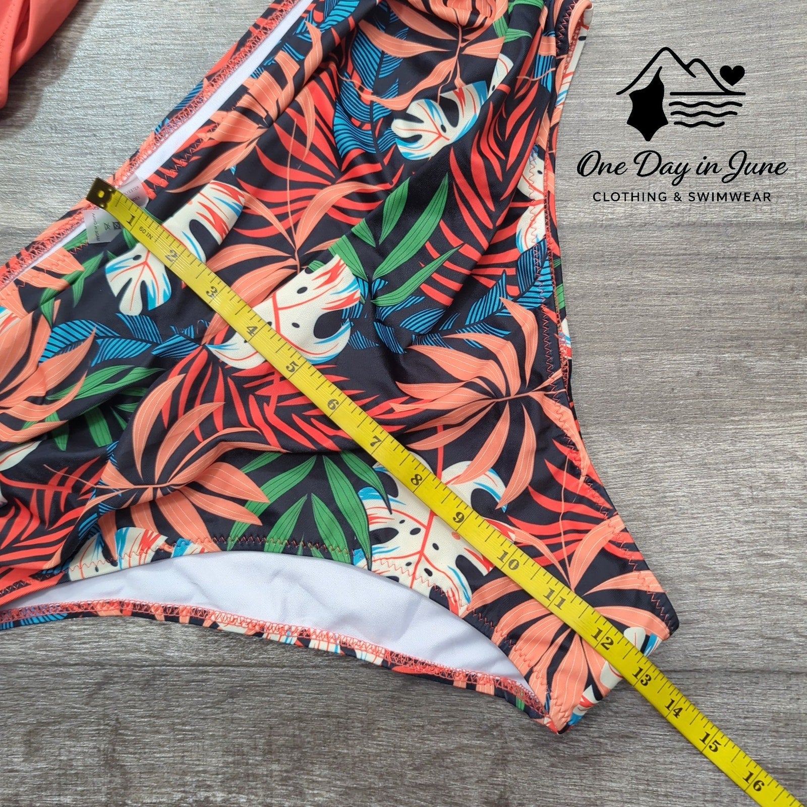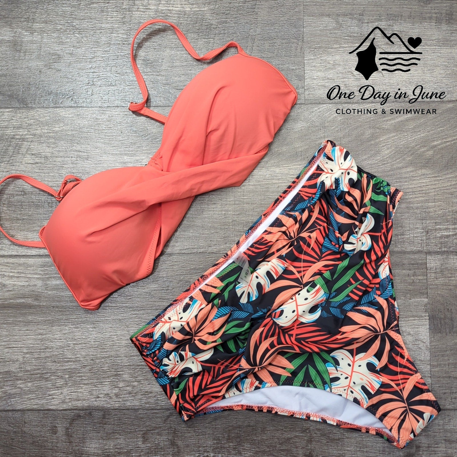 This cross front bikini's so snazzy and bright, with orange and black that's a delightful sight! The molded cups and high waist design will make you feel oh-so-divine.