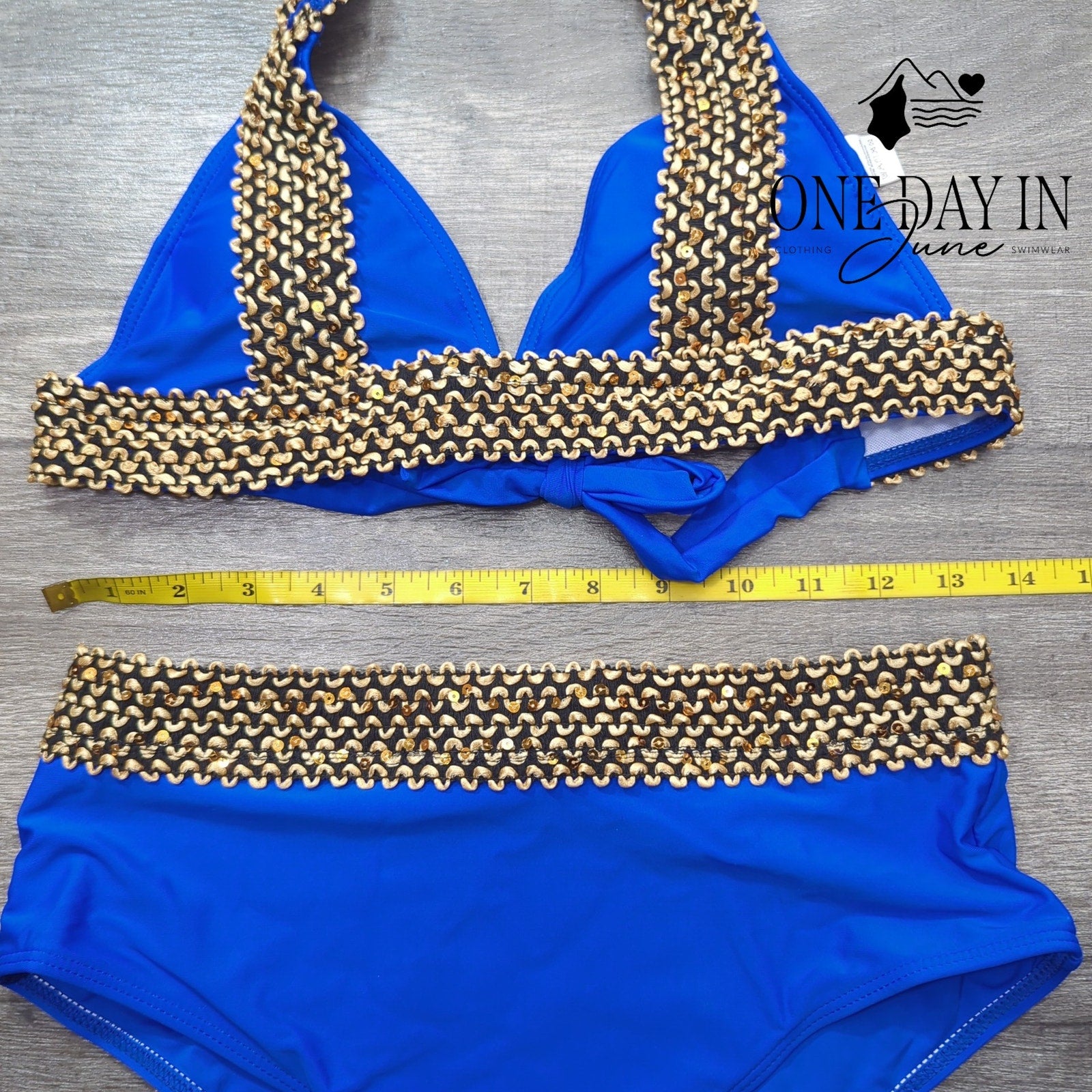This azure halter bikini captures the essence of summer's most enchanting moments, crafted from a luxurious blend of polyester and spandex that moves like silk against sun-kissed skin. The CharmLeaks design whispers of poolside sophistication and ocean-bound adventures, promising both comfort and undeniable allure. A pristine piece that awaits its debut beneath golden rays and endless blue skies.