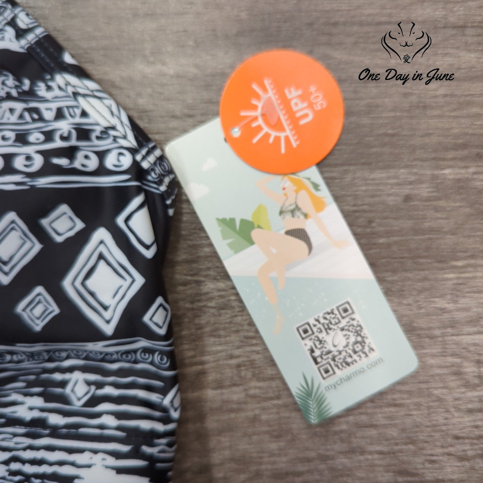 The savage sun can do nothing against this sleek black armor, a high-necked crop masterpiece that laughs in the face of conventional beach attire. Like a beautiful black mamba coiled for action, this CharmLeaks creation wraps its wearer in stretchy polyester-spandex comfort while maintaining an air of defiant sophistication that would make even the most jaded poolside lounger take notice.