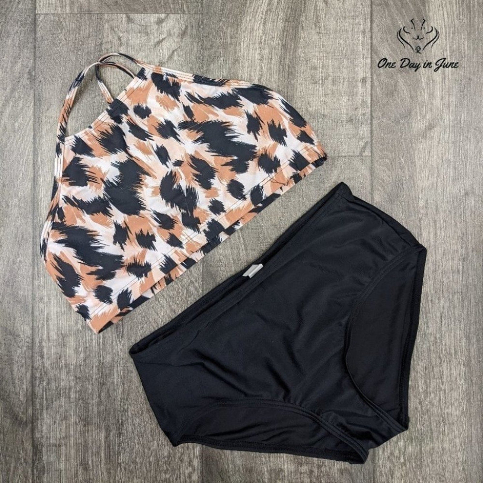 Effortlessly chic, this high-neck halter bikini captures summer's sultry spirit with its striking brown and black palette. Like waves lapping at twilight shores, its sleek design flows gracefully across the feminine form, crafted from a luxurious blend of polyester and spandex that promises both comfort and allure.
