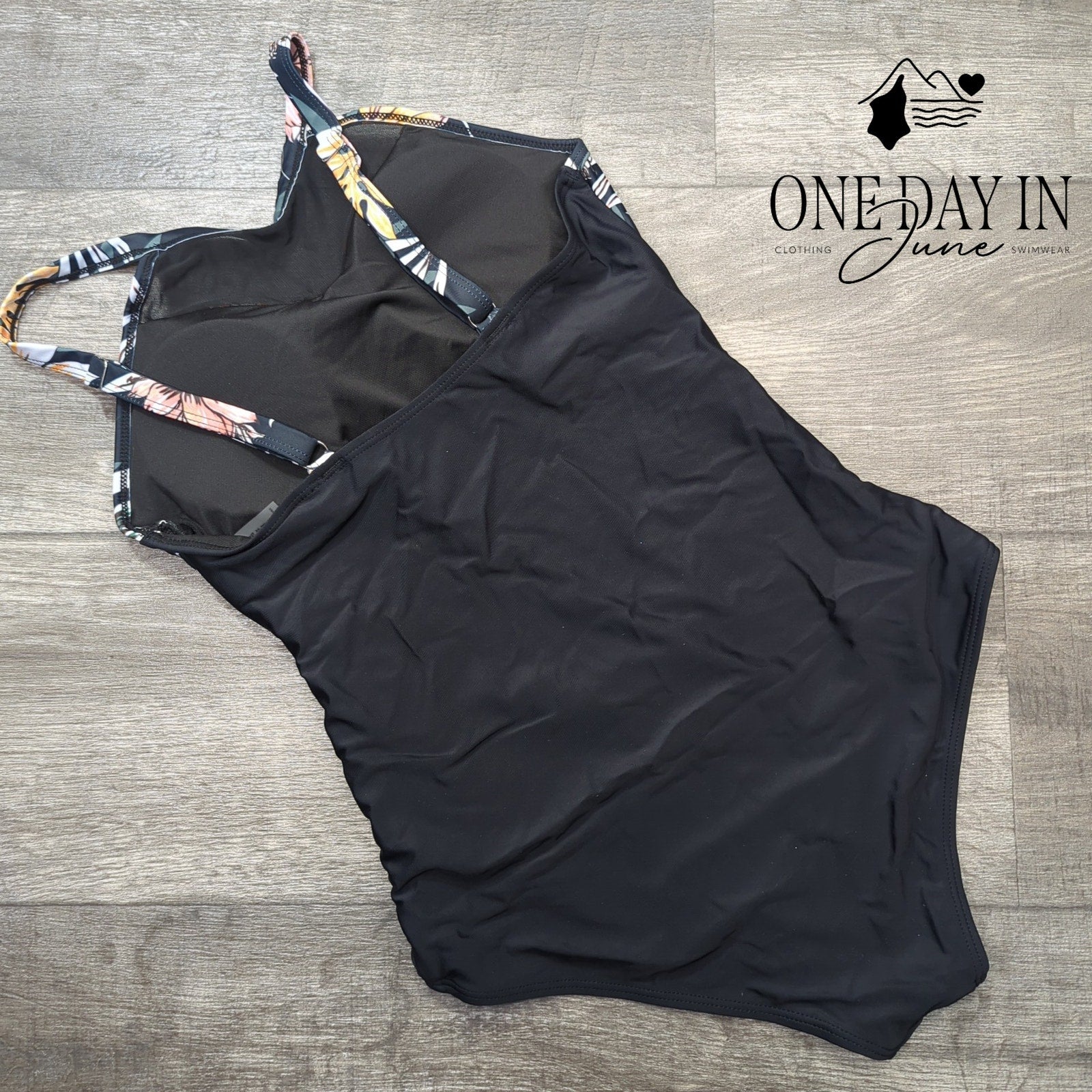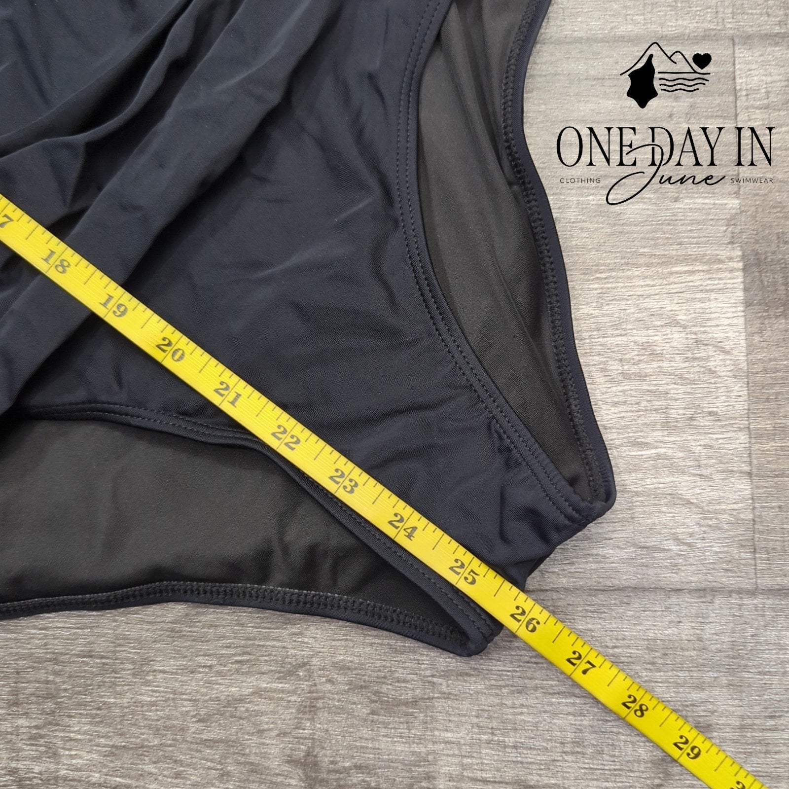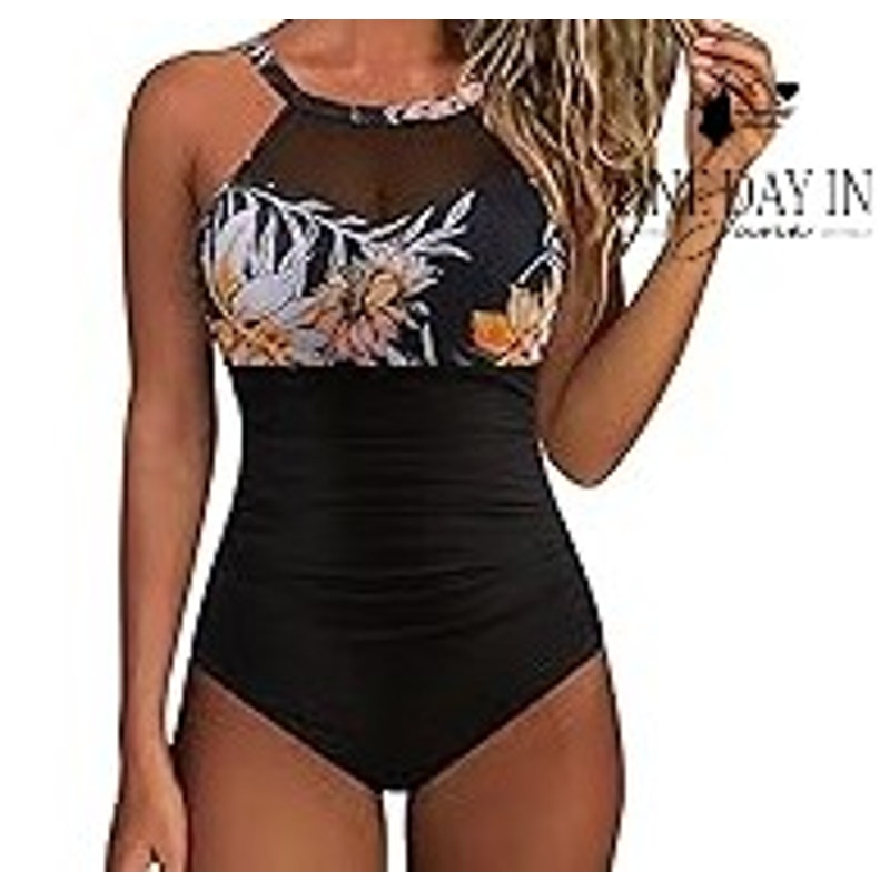 Oh my stars, what a sight to behold - a sleek black swimsuit that's wonderfully bold! With high neck mesh that's simply divine, this one-piece treasure will make you shine bright as you splash and play in the summer sunshine!