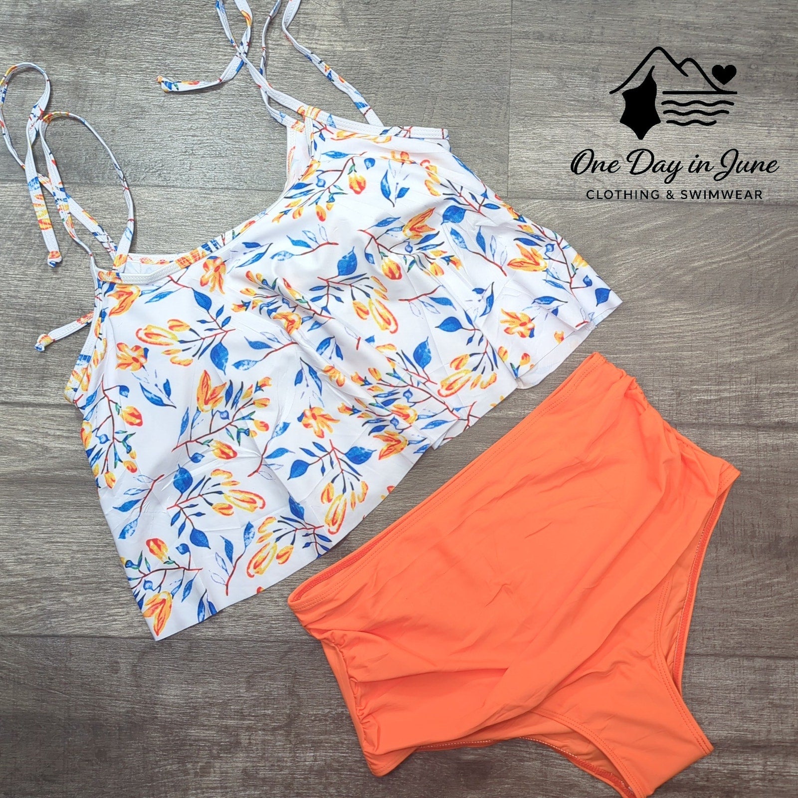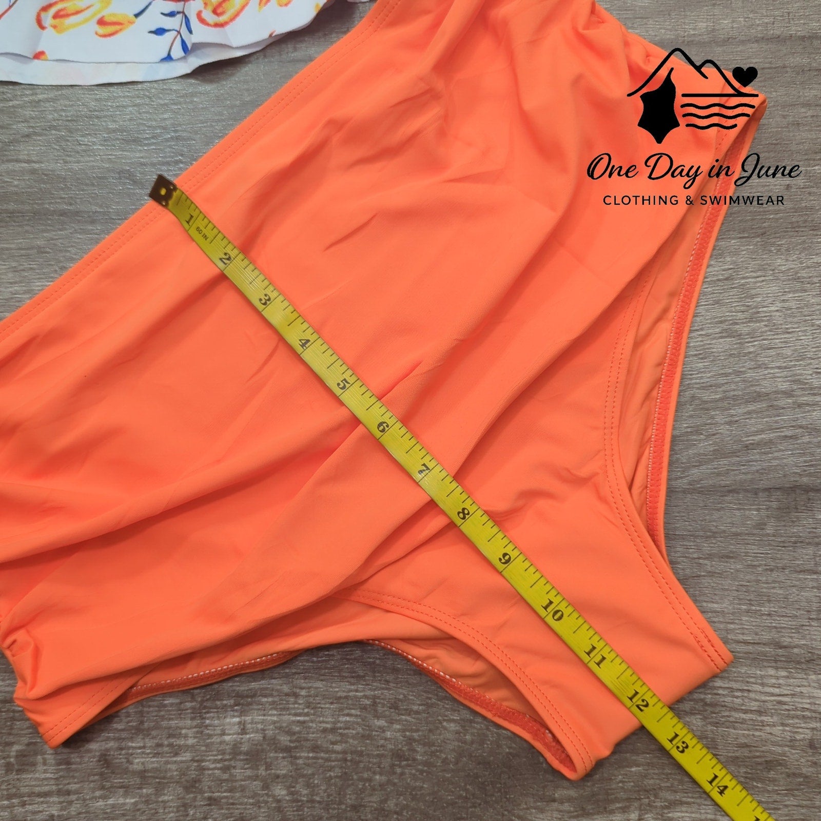 Blast into the summer void with this floral white and orange bikini, where the high waist meets the madness of flounce in a savage journey to aquatic nirvana. The colors dance like wild sunspots on your retina, while the stretchy polyester-elastane blend hugs your frame with the tenacity of a desert heat mirage — making this Charmleaks swimsuit not just apparel, but a ticket to ride the wave of poolside chaos that awaits beneath the burning sun.