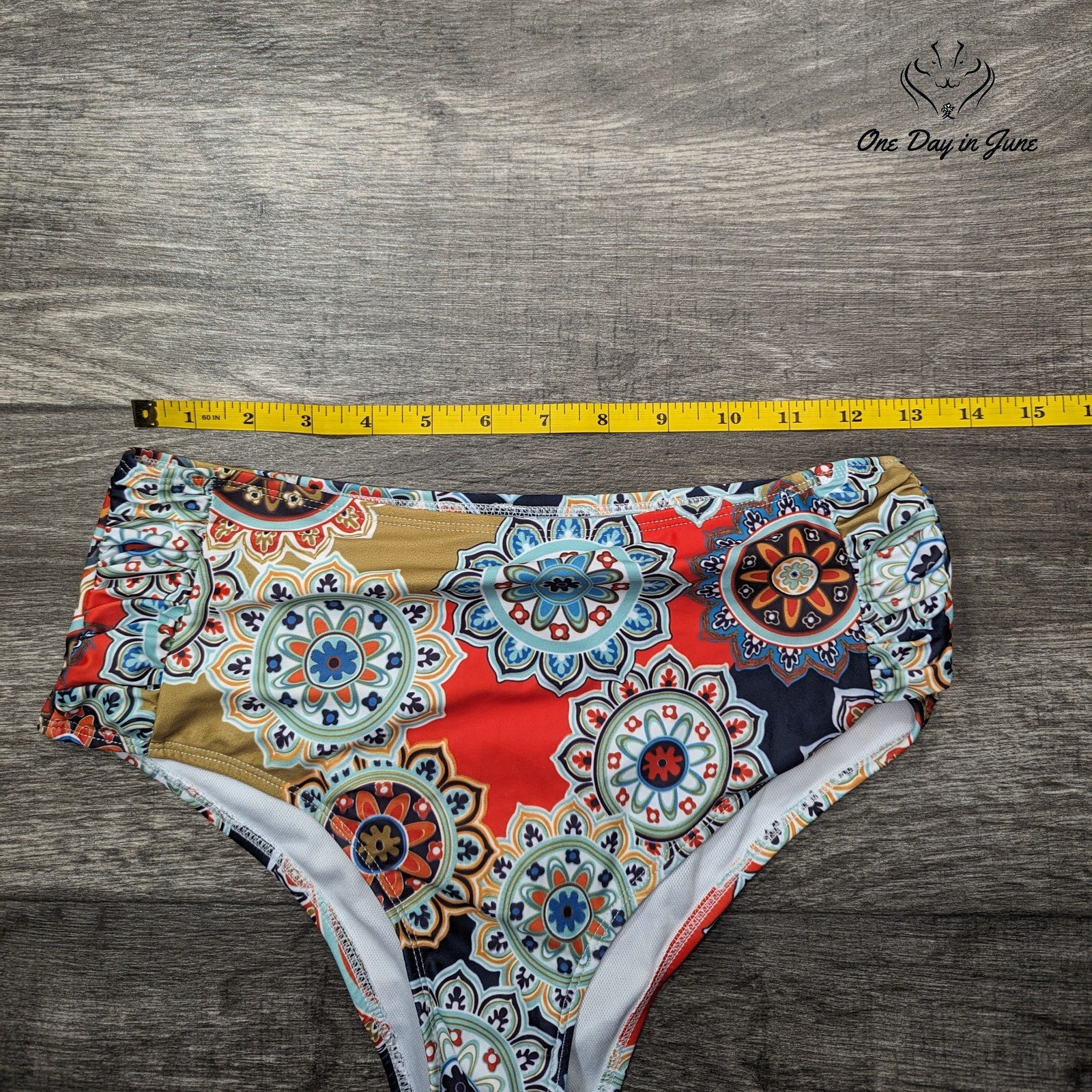 This CharmLeaks Ruched Hip Bikini Bottom shouts of the wild and free, splashed in a medley of colors. Crafted from a forgiving blend of polyester and elastane, it promises not just style, but comfort and resilience under the sun. New and unworn, it awaits its journey in your adventures.