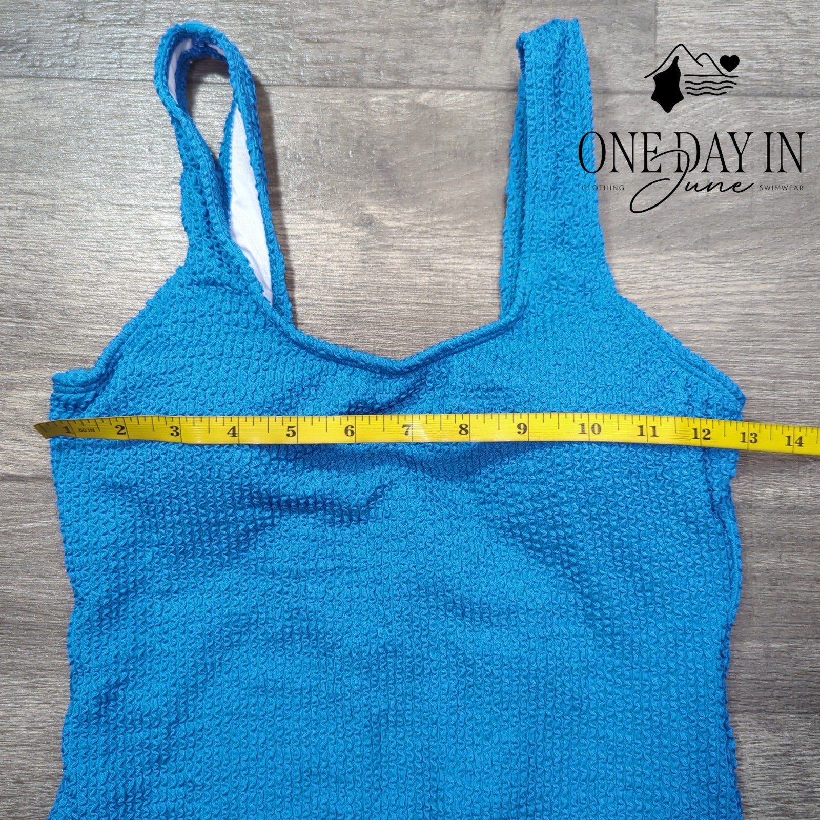 A most delightful blue one piece swimsuit from CharmLeaks, featuring charming smocked detailing that would flatter any lady's figure with the utmost grace. The construction of polyester and spandex ensures both comfort and elegance whilst bathing. New without tags and in pristine condition, ready for immediate enjoyment at the seaside.