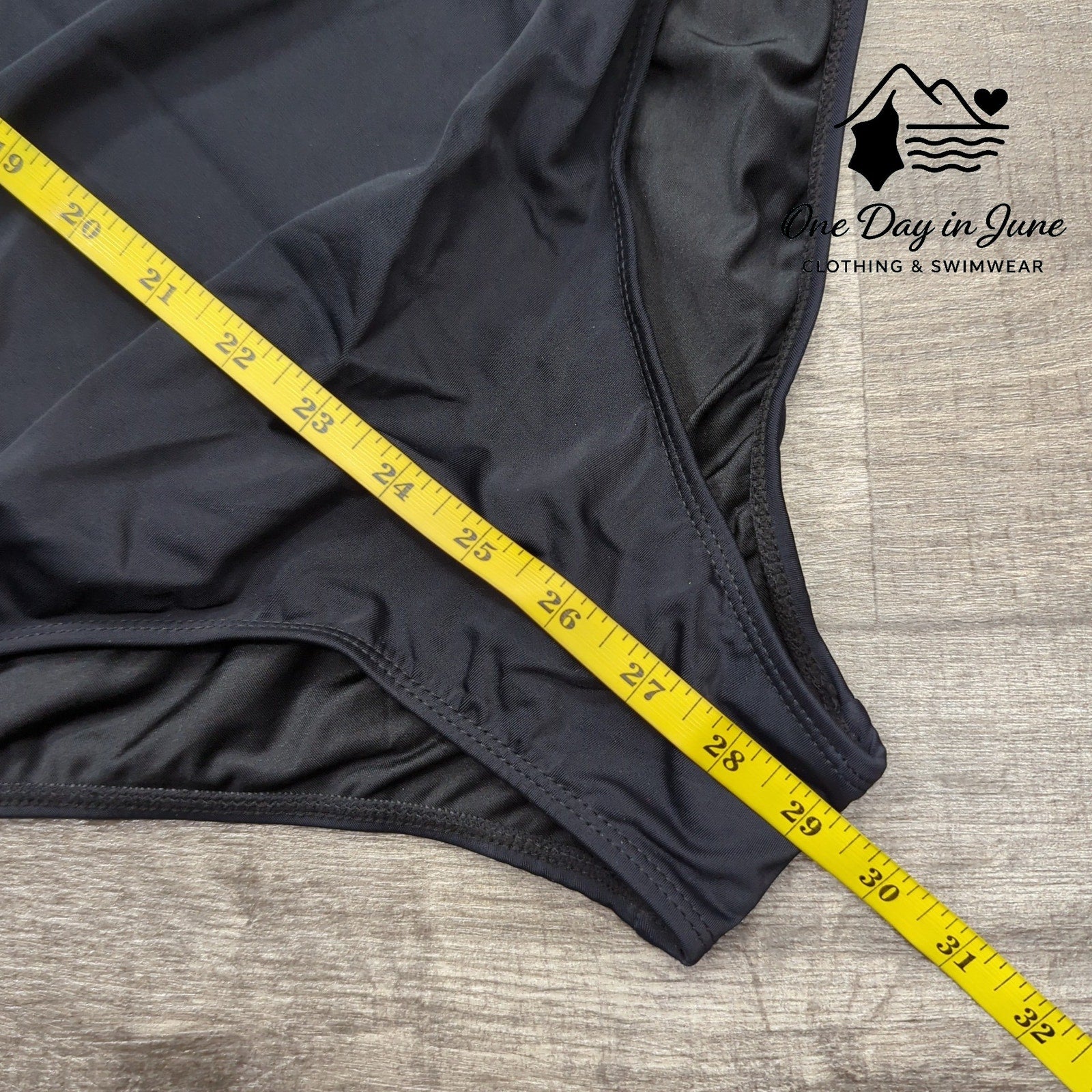 Like a panther stalking through the shimmering fever dream of a neon beach town, this sleek black Charmleaks one-piece cuts a silhouette so dangerous it could be classified as a weapon. The V-neck plunges with reckless abandon while mesh panels reveal just enough skin to make the poolside conservatives twitch nervously in their lounge chairs, all wrapped in a polyester-spandex blend that hugs the body like a second skin designed by some twisted fashion genius with a vendetta against modesty.