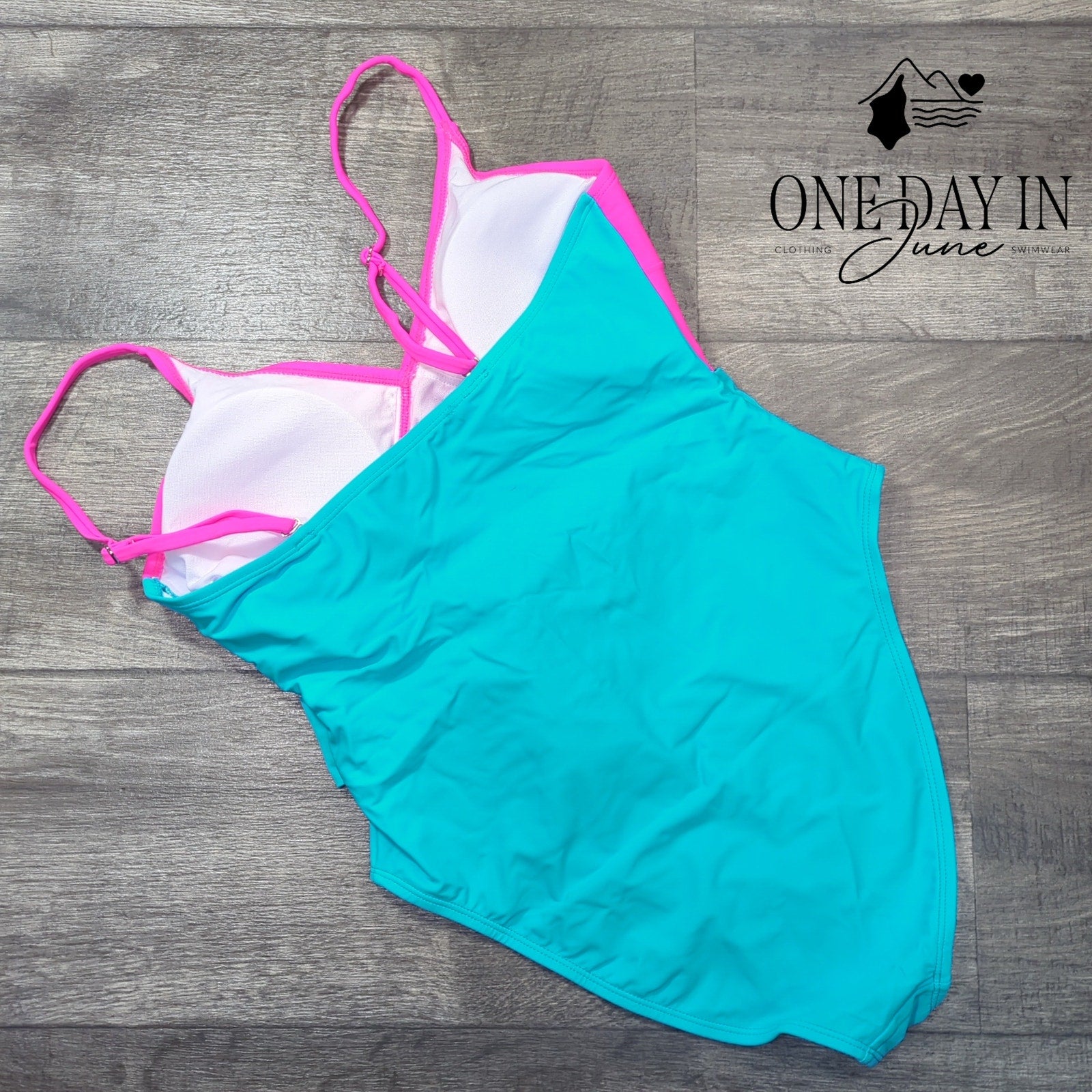 A ravishing one-piece swimsuit that captures the essence of summer's boldest pleasures, rendered in pink and blue hues that shimmer with promise. The daring cut-out design speaks to those who understand that true elegance lies not merely in coverage, but in the artful revelation of form. Crafted from a luxurious blend of polyester and spandex, this pristine piece awaits its debut at poolside soirées and sun-drenched beaches.
