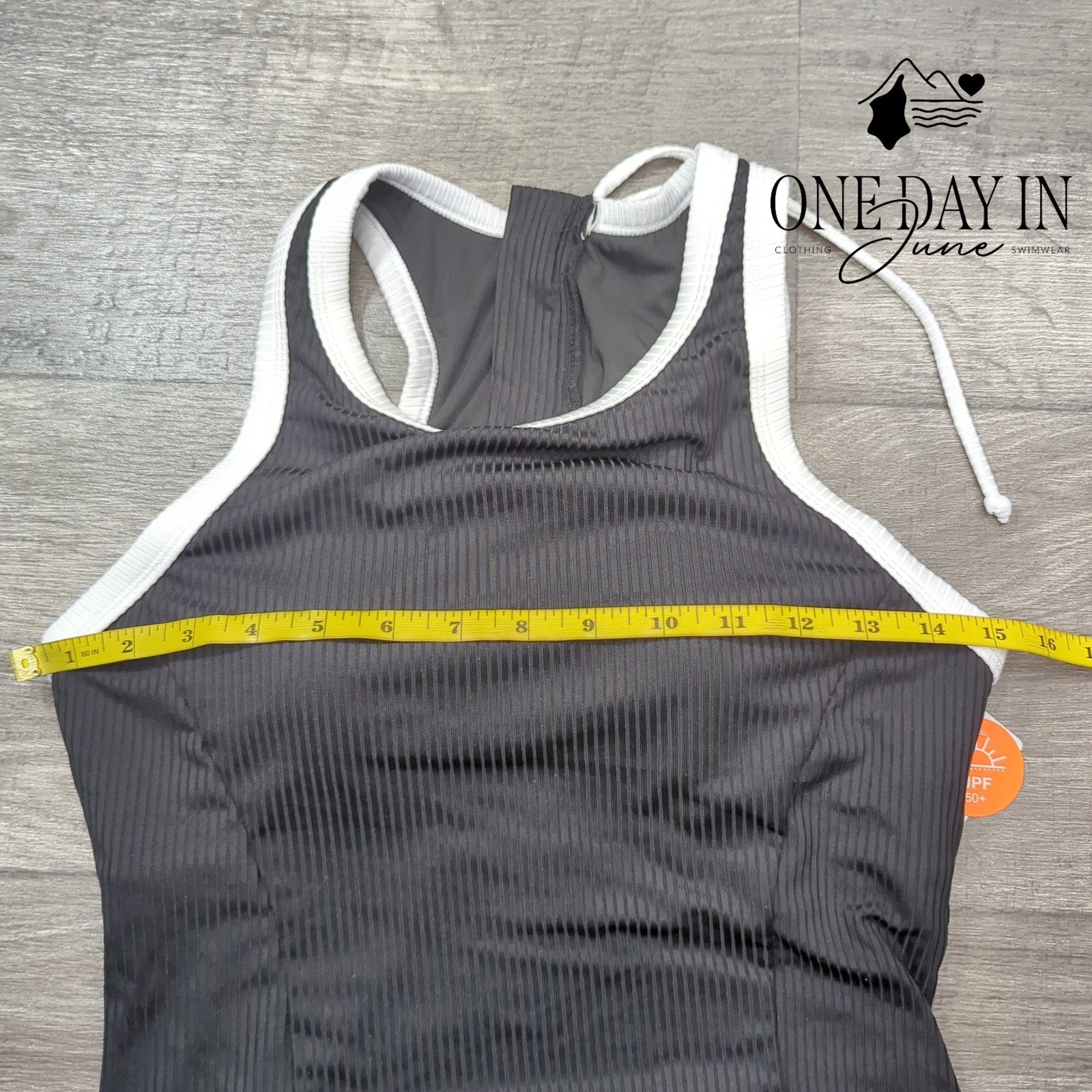 Charmo High Neck Ribbed One Piece Swimsuit Size M