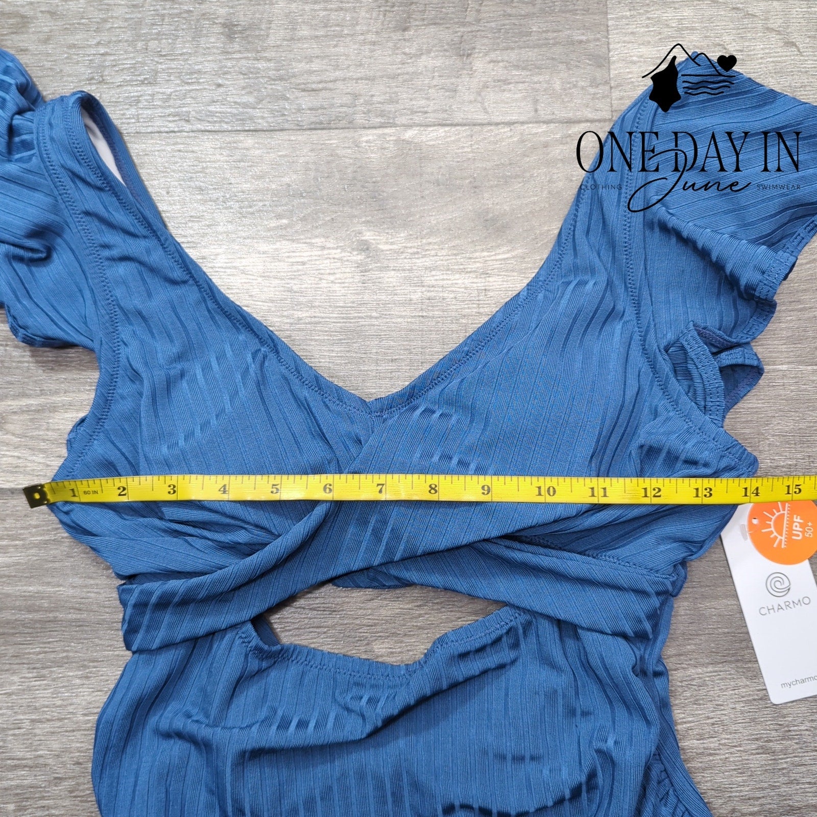 Charmo Maternity Cross Front Ruffle Shoulder Cut Out Tie Back One Piece Swimsuit Size S