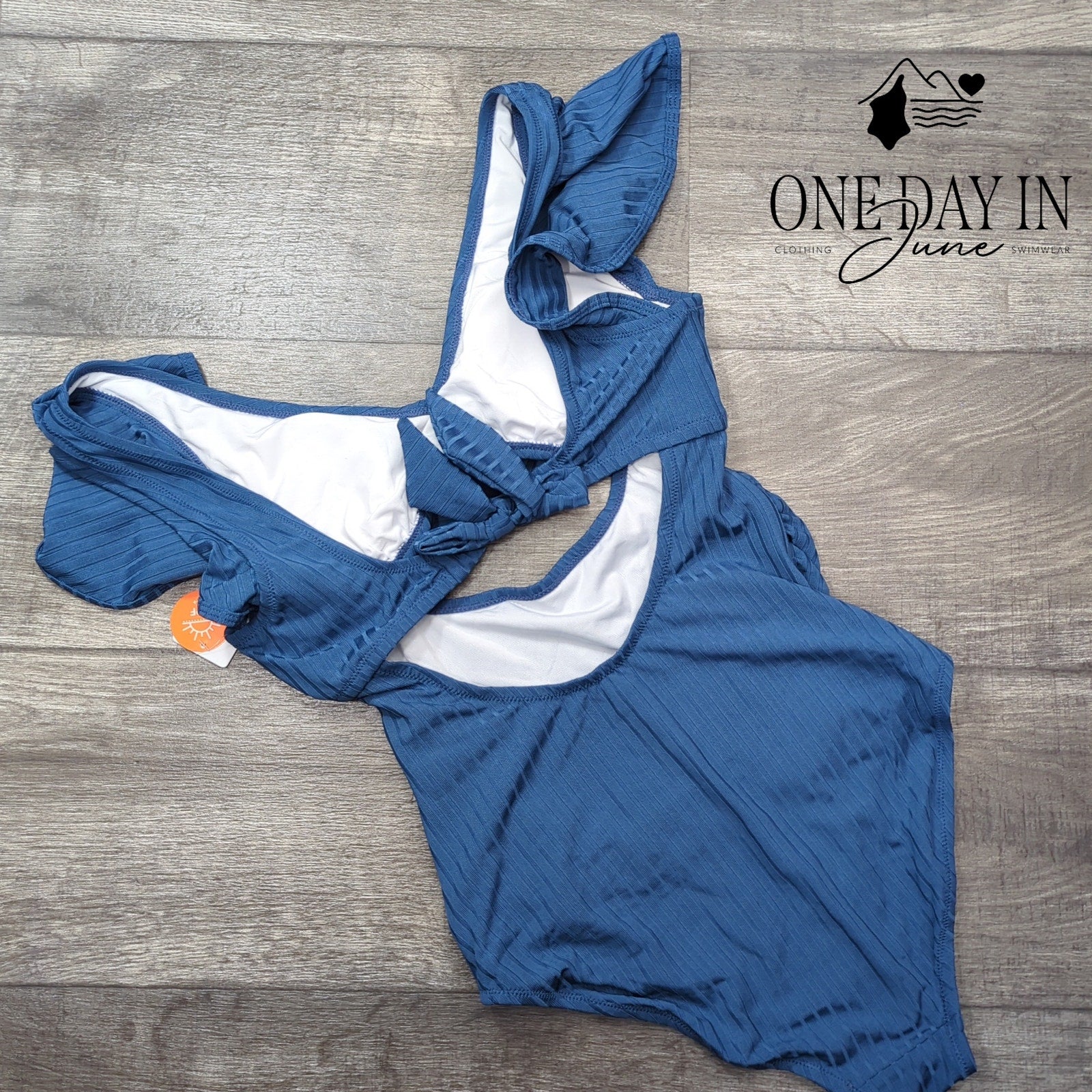 Charmo Maternity Ruffle Shoulder CutOut Tie Back One Piece Swimsuit Size S