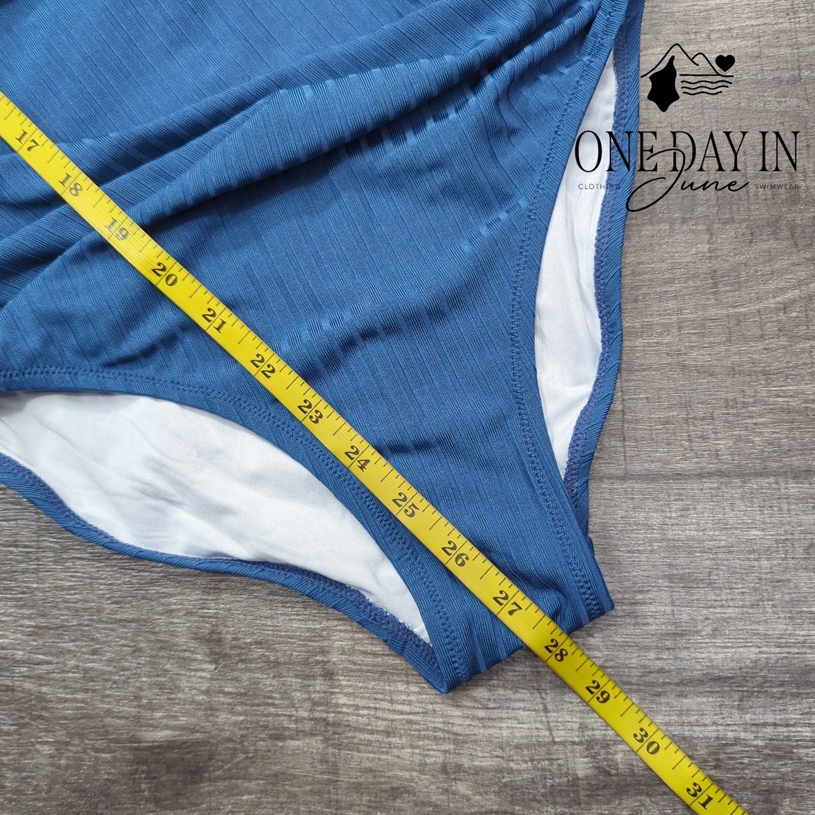 This azure one-piece swimsuit captures the essence of modern maternal elegance with its sophisticated cross-front design and delicate ruffle shoulders. The strategic cutout details and tie-back closure create a silhouette that flatters the expecting figure with remarkable grace. Crafted from a luxurious polyester and spandex blend, this piece promises both comfort and style for those golden afternoons by the water.