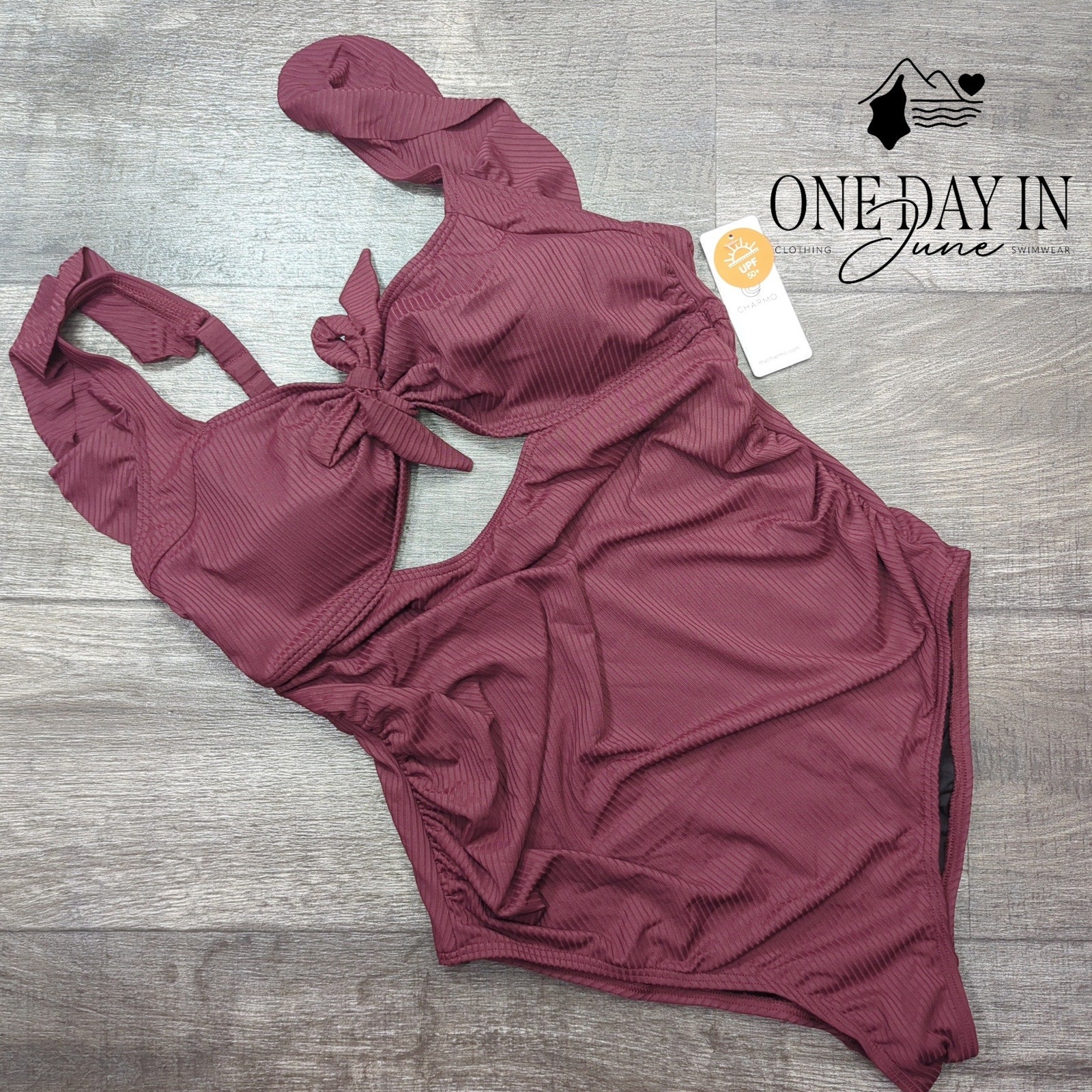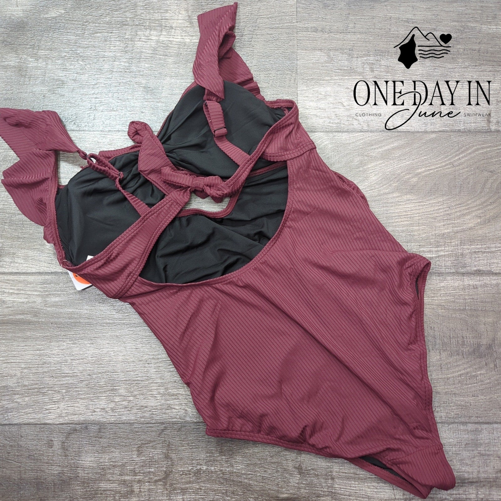 Charmo Maternity Ruffle Shoulder Ribbed Cut Out One Piece Swimsuit Size XL