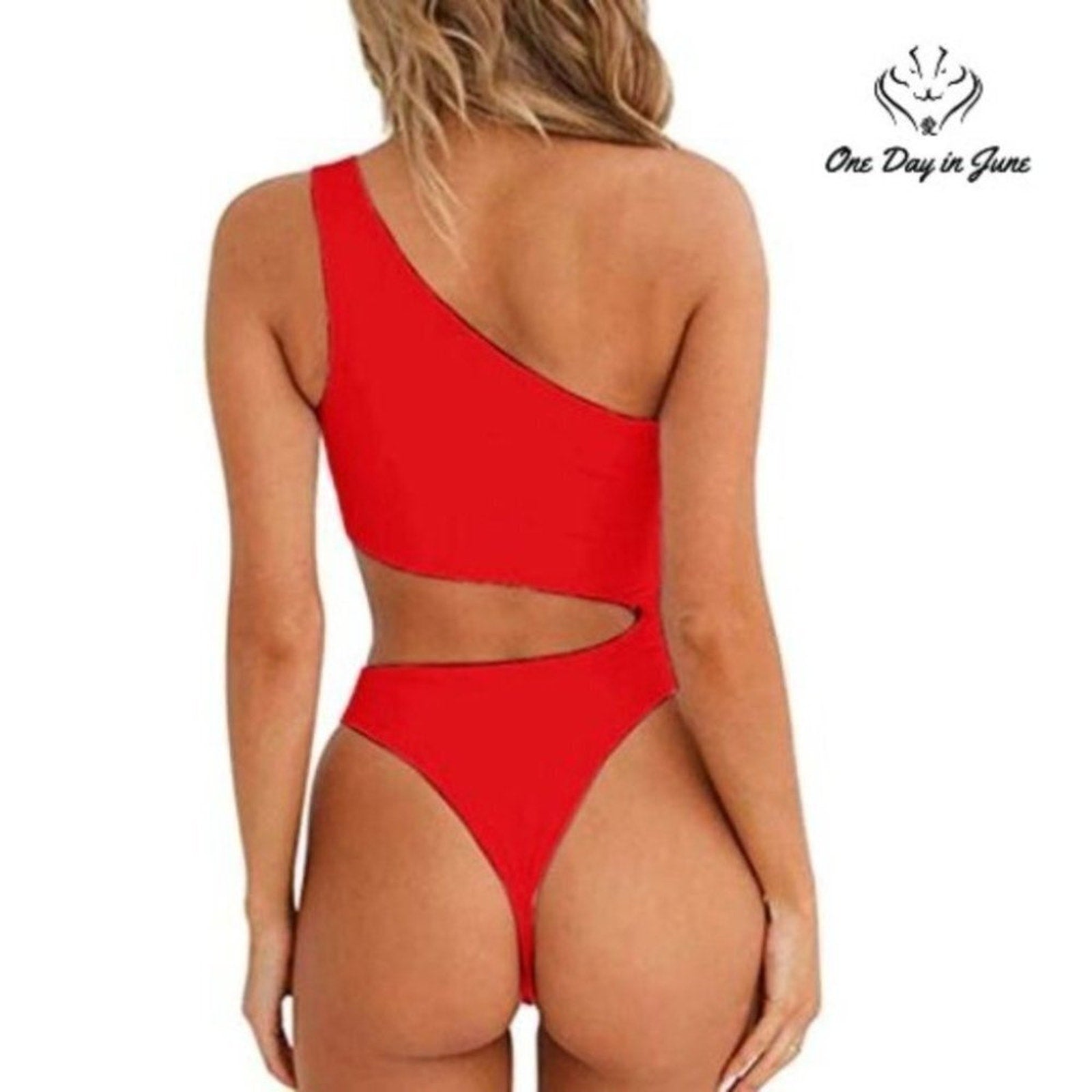 Oh, what a sight in ravishing red, this one-shoulder swimsuit will turn every head! With a flirty cutout and asymmetric design, this striking one-piece makes beach days truly divine.