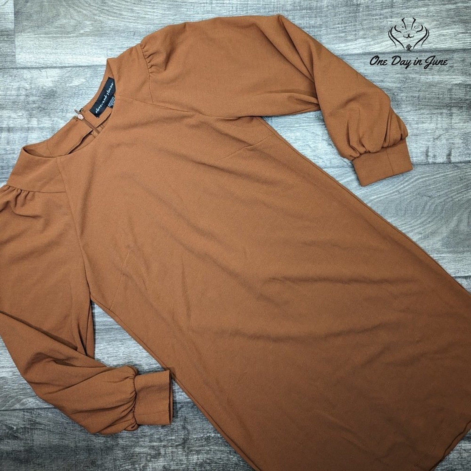 A riotous ensemble where the line between casual and daring blurs, this Clover and Sloane Long Sleeve Mini Dress in earthy brown asserts itself. New, pristine, crafted from the sinuous dance between polyester and spandex - it's a sartorial revolution, not a dress. Slip into this, and you're not just wearing an outfit - you're embracing a wild, untamed narrative of its own.