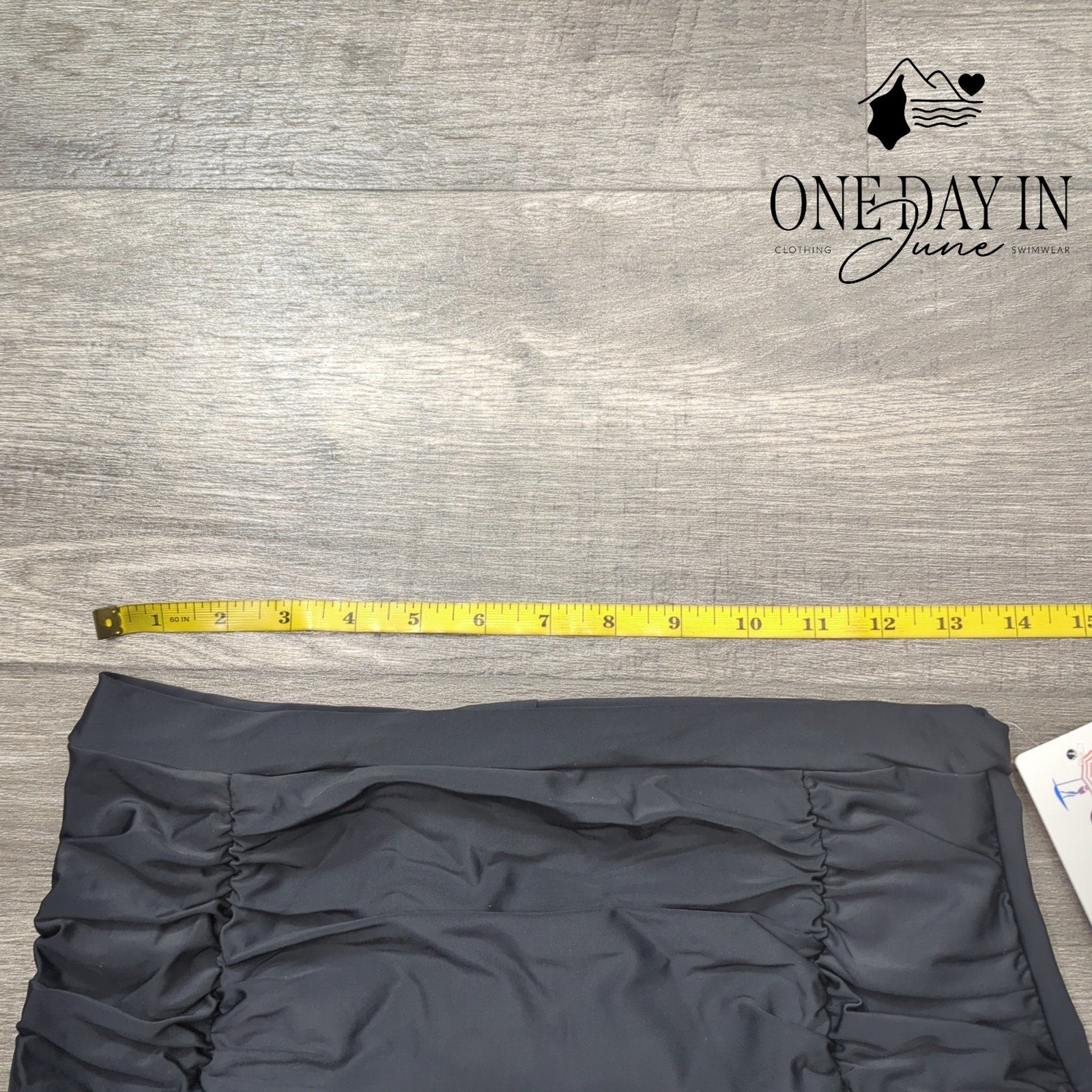 These black bikini bottoms sit high and proud, perfect for beach days sunny and loud! With stretchy fabric that moves and bends, your seaside adventures will have no ends!