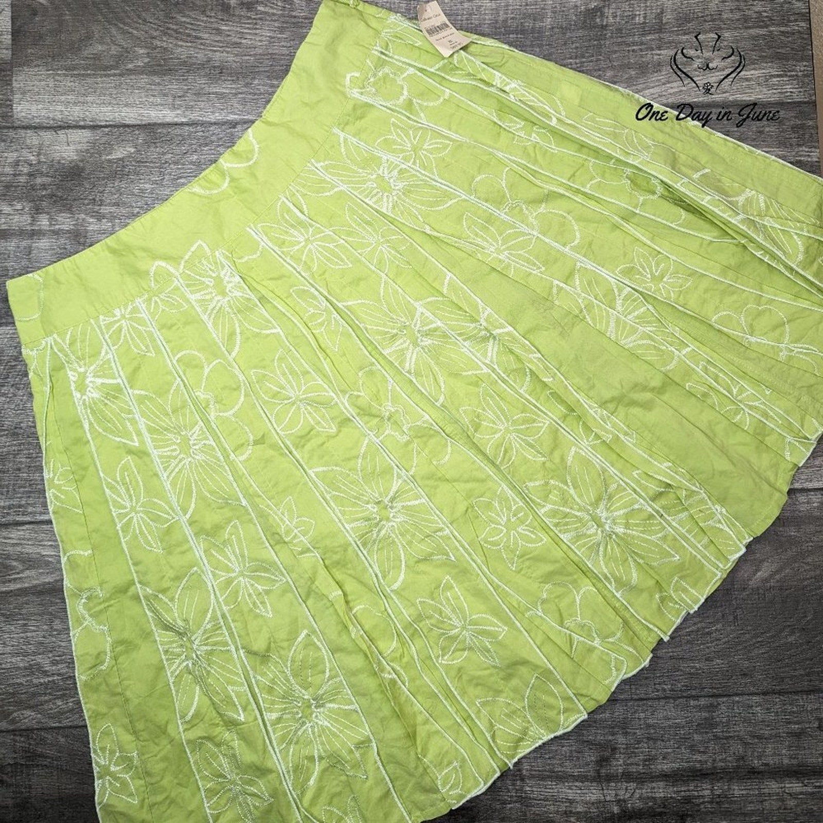 Experience an elegant and fresh look with this green A Line Pleated Skirt from Coldwater Creek. New with tags, this women's skirt offers a flattering silhouette and is made from comfortable, high-quality cotton. Perfect for adding a pop of color to your wardrobe!