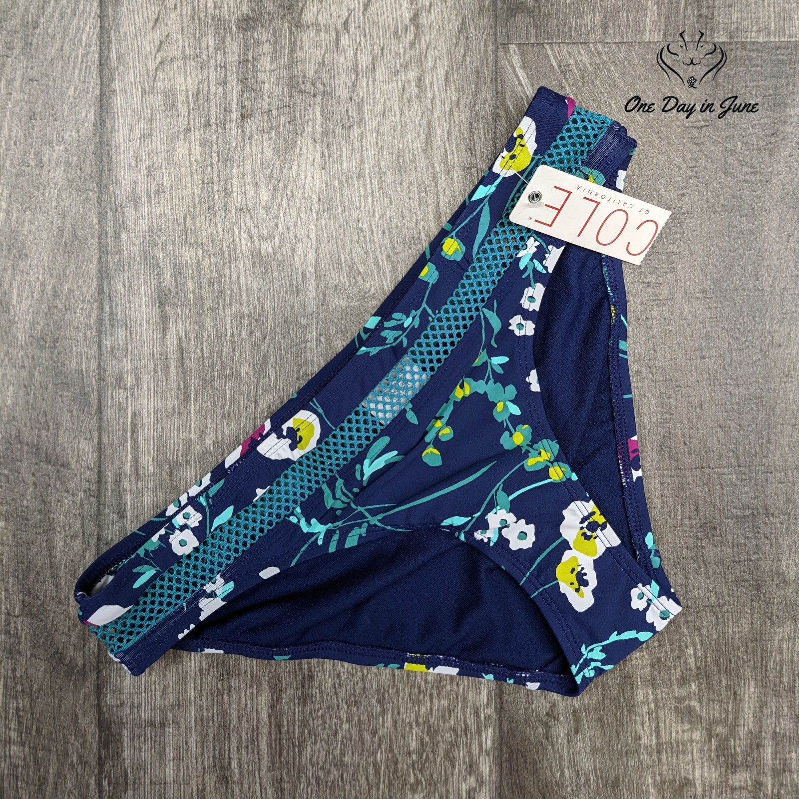 Cole of California Mesh Low Rise Bikini Bottom Swimwear Size S