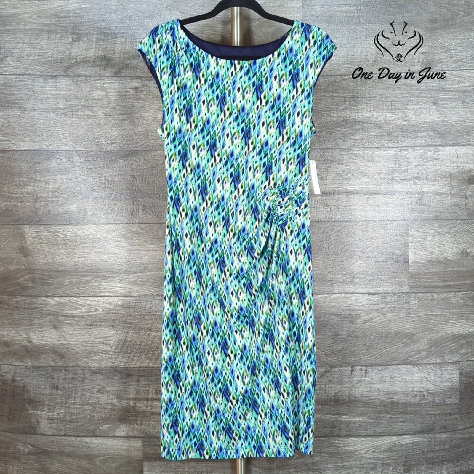 Fear and loathing in the fashion world, a green serpent of a dress slithers forth, ready to constrict and caress in equal measure. This Connected creation, a sleeveless wonder crafted from the unholy union of polyester and spandex, promises a wild ride through the neon-lit jungle of style, leaving onlookers slack-jawed and trembling in its wake.