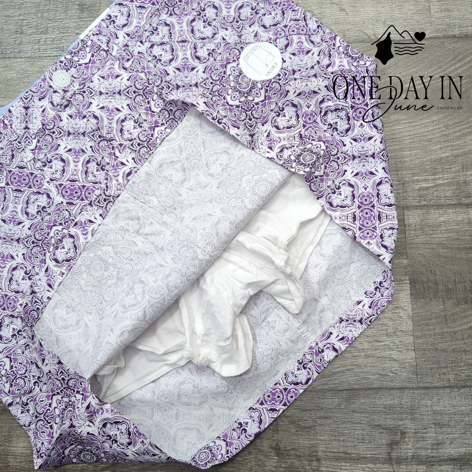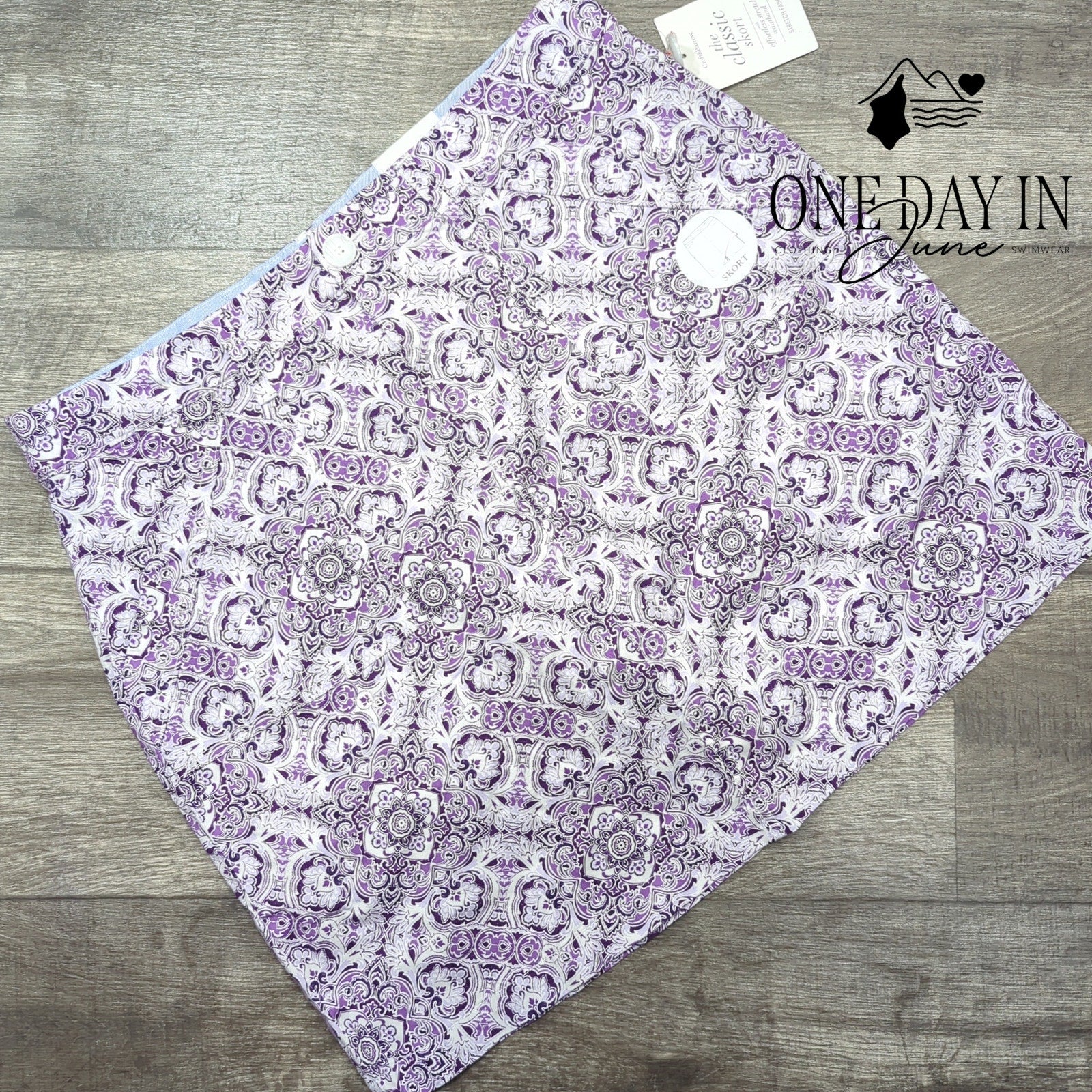This purple skort is quite a sight, with comfort that feels just right! Made of cotton soft and true, with a stretchy touch that's perfect for you!