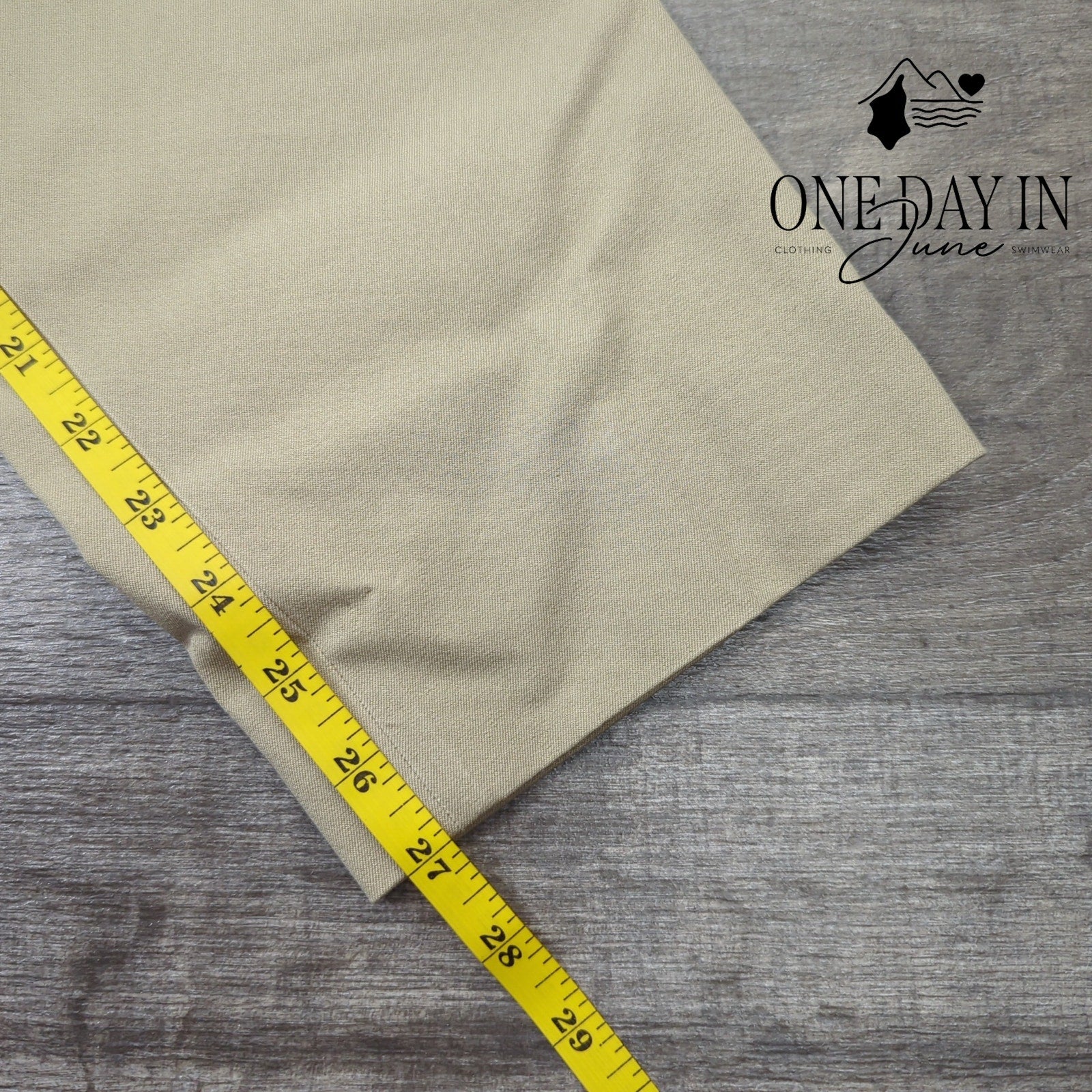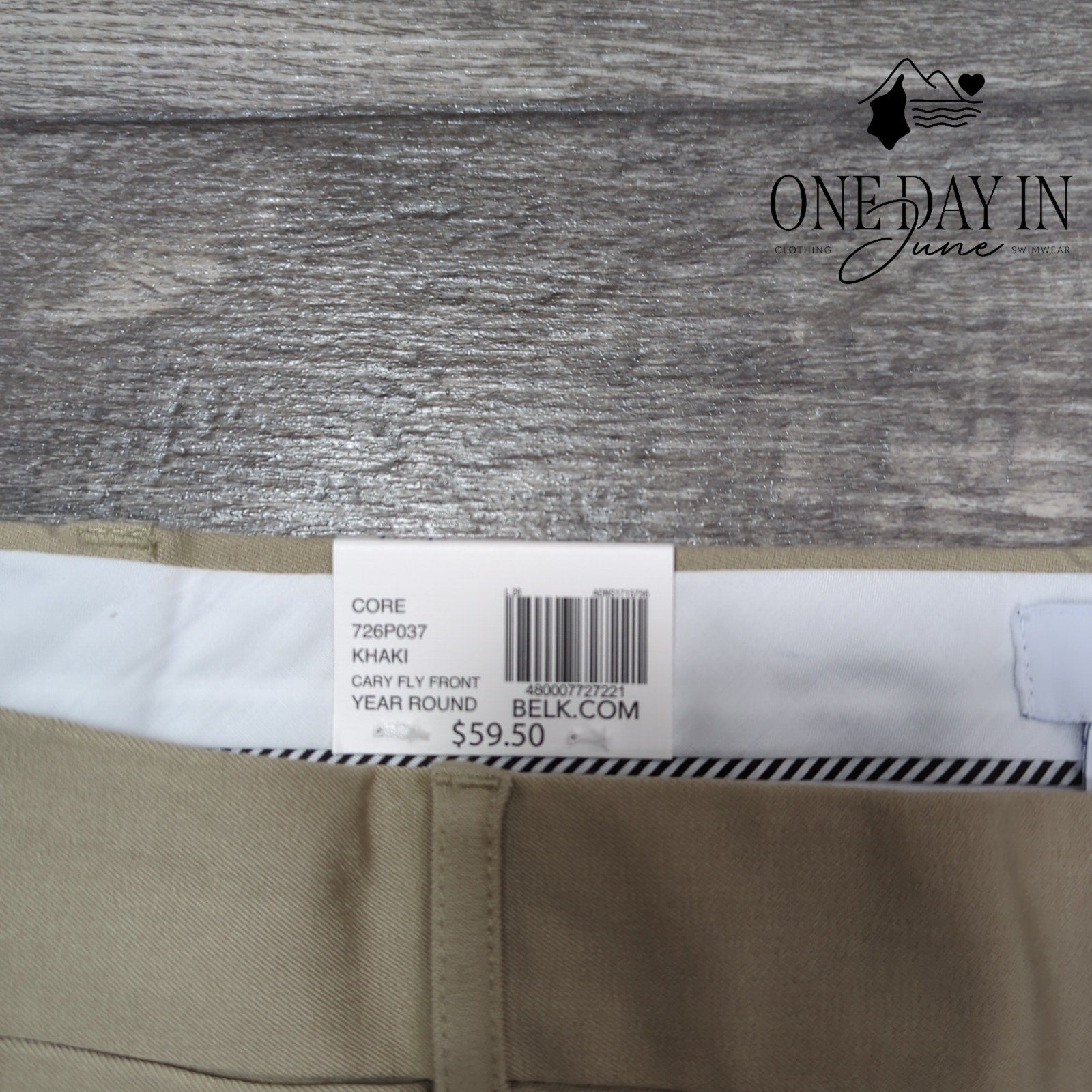 The Cary flat front pants from Crown & Ivy arrive in a glorious tan that screams corporate rebellion without actually rebelling against anything—the perfect camouflage for navigating the savage jungle of modern commerce. These beauties blend cotton, rayon, and spandex in some kind of textile alchemy that promises movement and comfort while maintaining the crisp, clean lines demanded by a world gone mad with business casual dress codes. Fresh from the factory with all tags intact, ready to storm the gates of whatever adventure or conference room awaits.