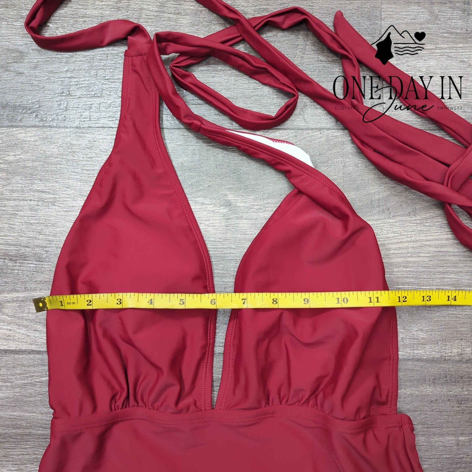 A most fetching red one-piece from Cupshe, fashioned with a deep V neckline and elegant wrap design that shall flatter any lady's figure with the utmost grace. The vibrant crimson hue speaks of confidence and charm, whilst the thoughtful construction ensures both comfort and style for seaside pursuits. A delightful acquisition for the discerning woman who wishes to make a gentle yet striking impression at the water's edge.