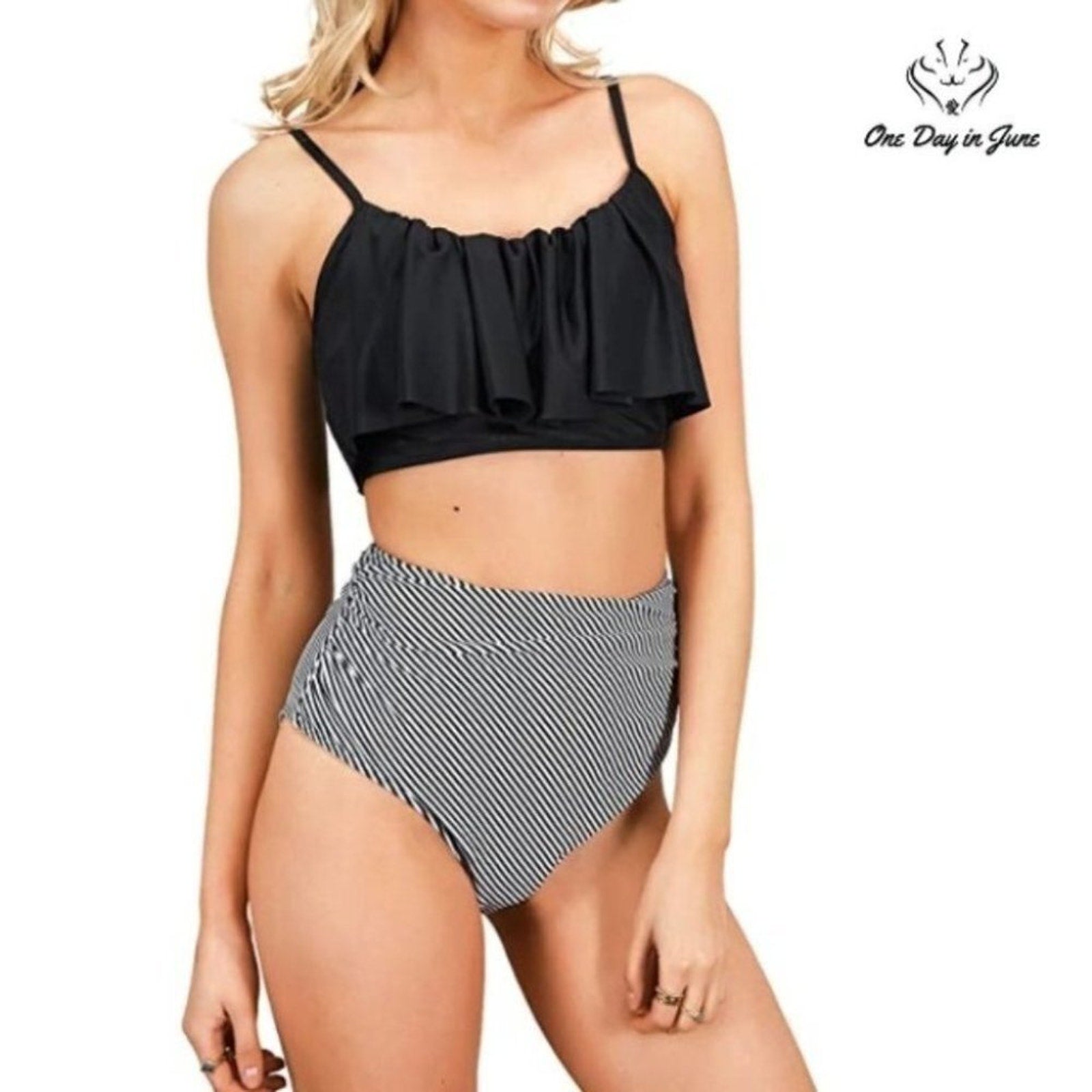 Embrace the allure of seaside glamour with this exquisite Cupshe bikini. Its falbala design cascades like waves, while the monochromatic palette evokes timeless sophistication, promising a summer of unforgettable elegance.