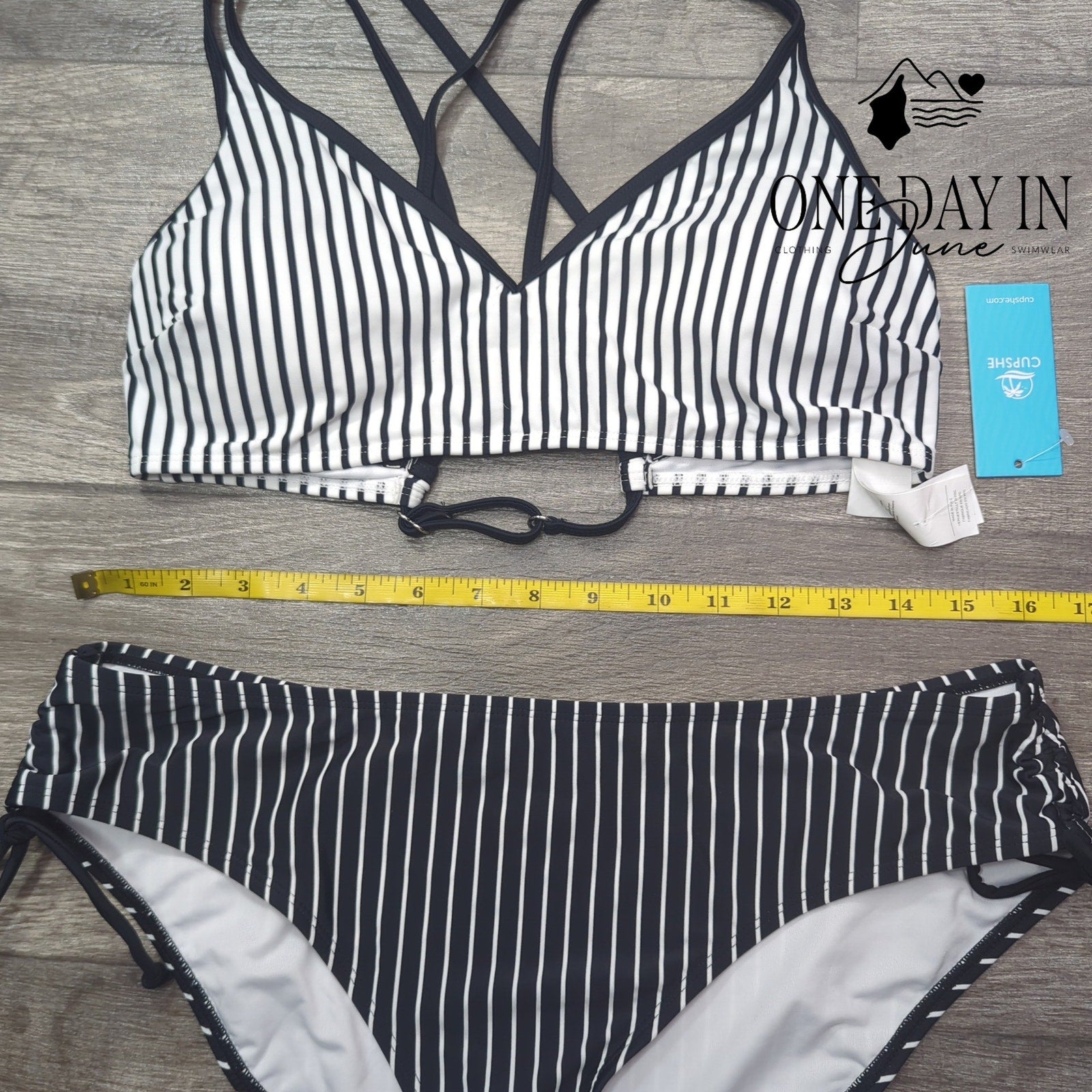 Cupshe Ruched Side Striped Bikini Swimsuit Size XL