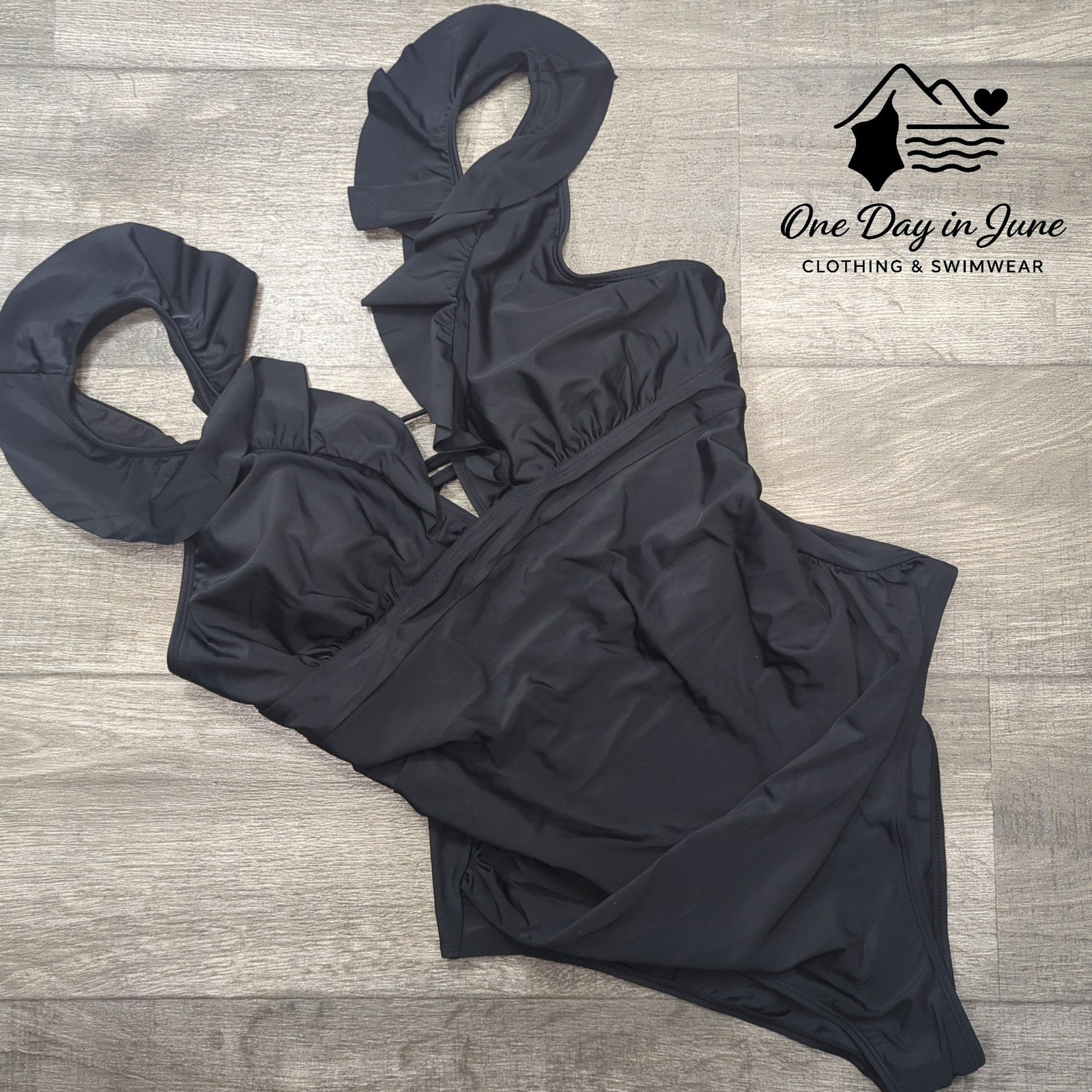 Tags: #CupsheSwimwear #BlackOnepiece #RuffledSwimsuit