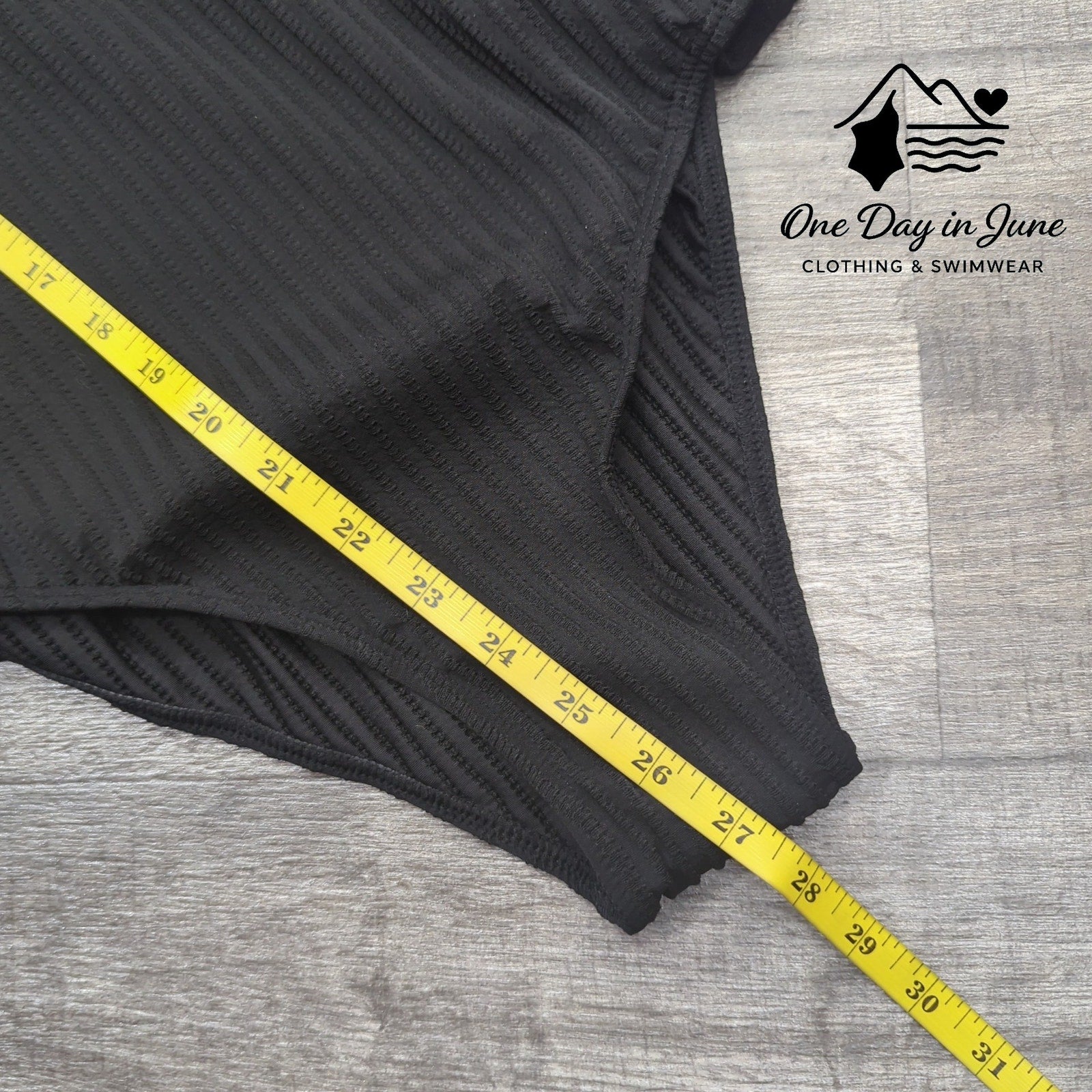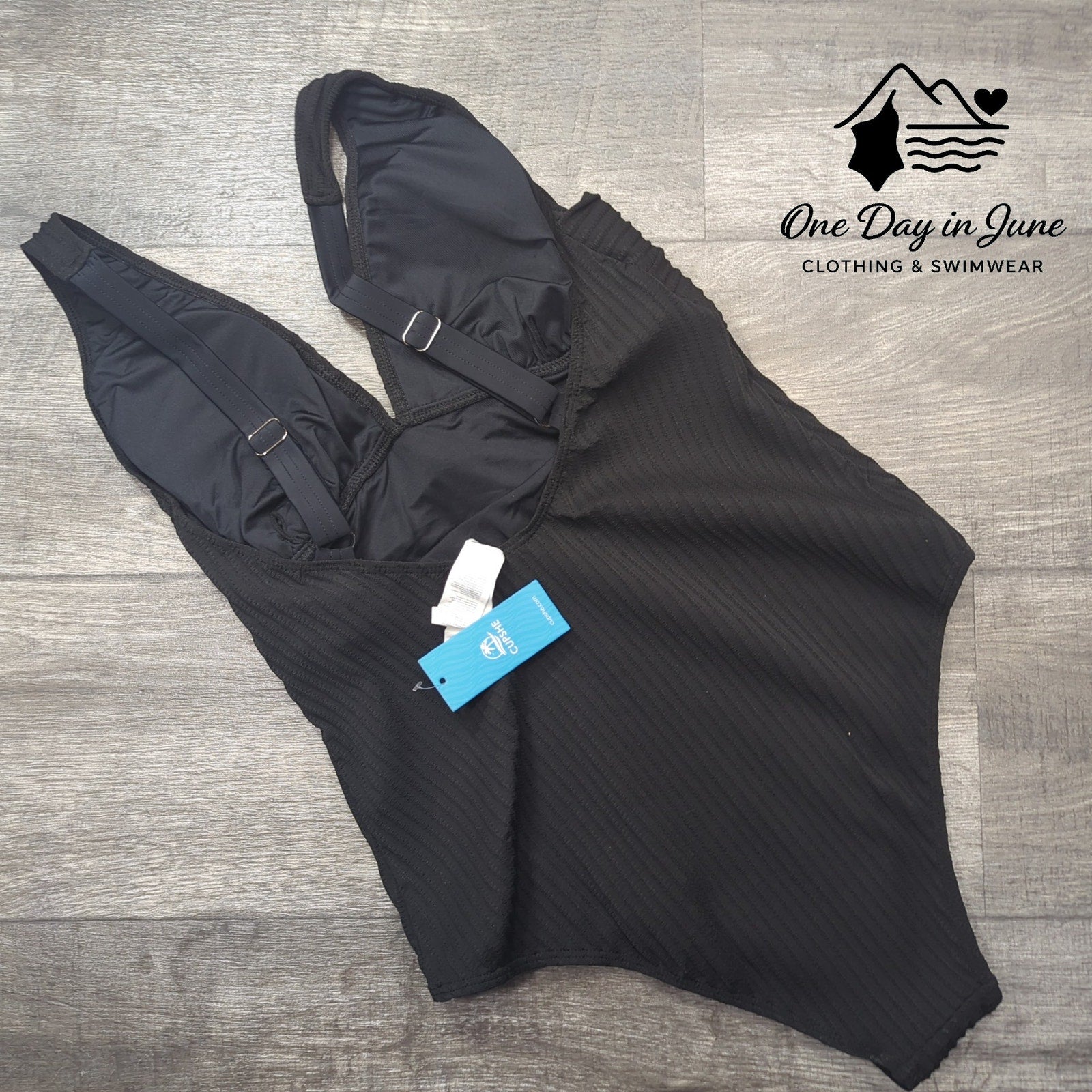 This textured V-neck one piece is the perfect black swimsuit, oh yes indeed! Your beach day style will be ever so sleek, with a flattering design that's truly unique.