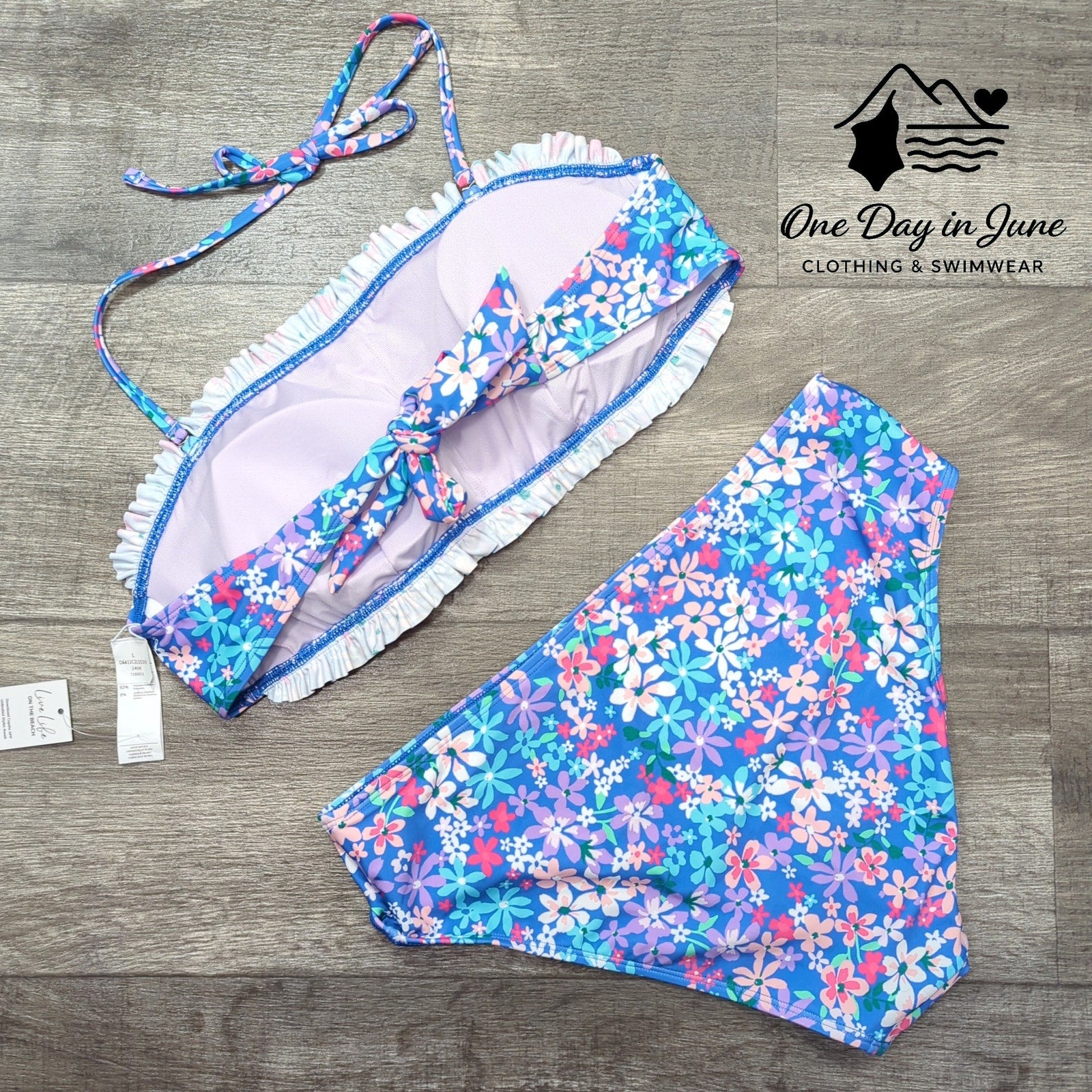 Cupshe Tie Back Smocked Bikini Swimsuit Size L