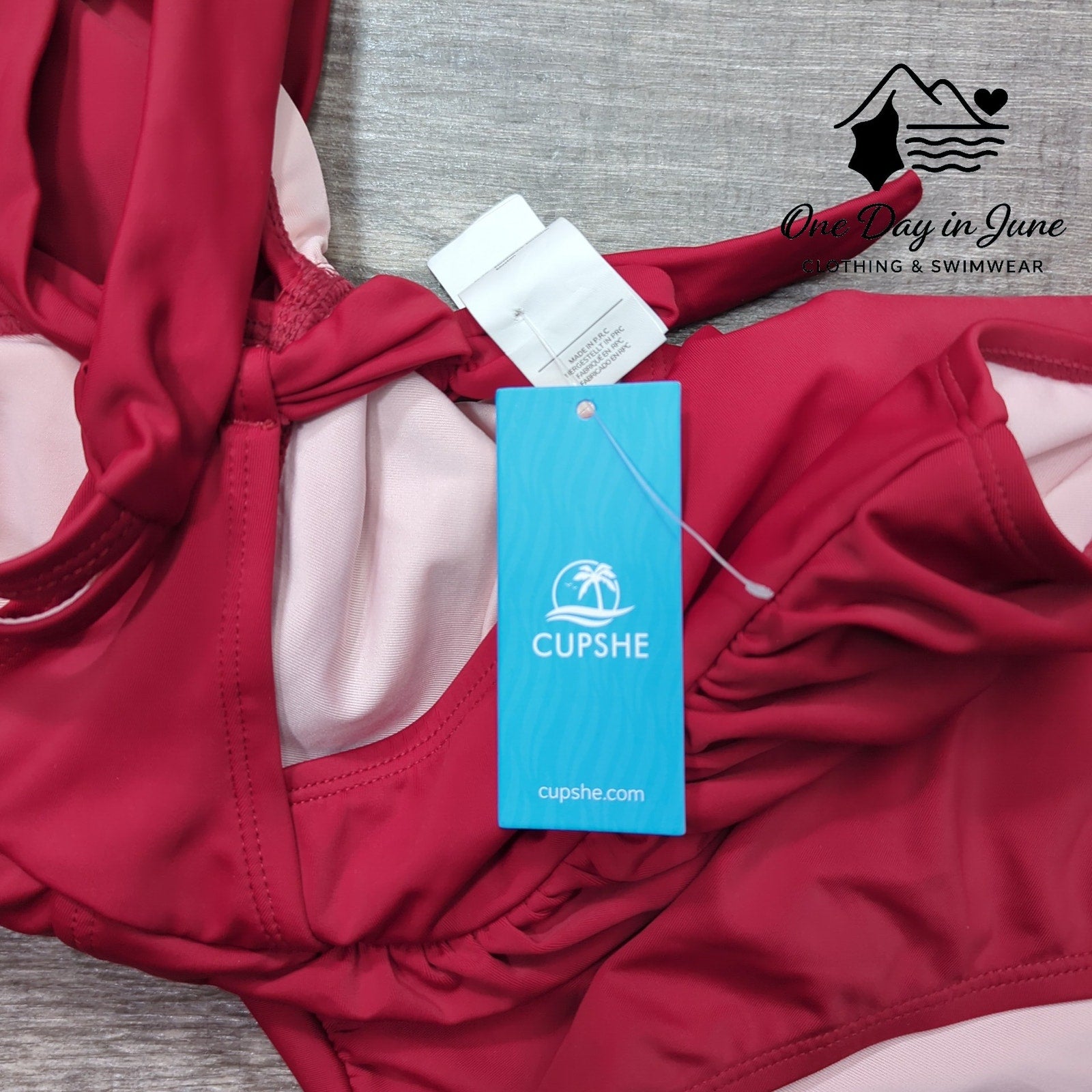 Tags: #CupsheSwimwear #RedSwimsuit #VNeckOnePiece
