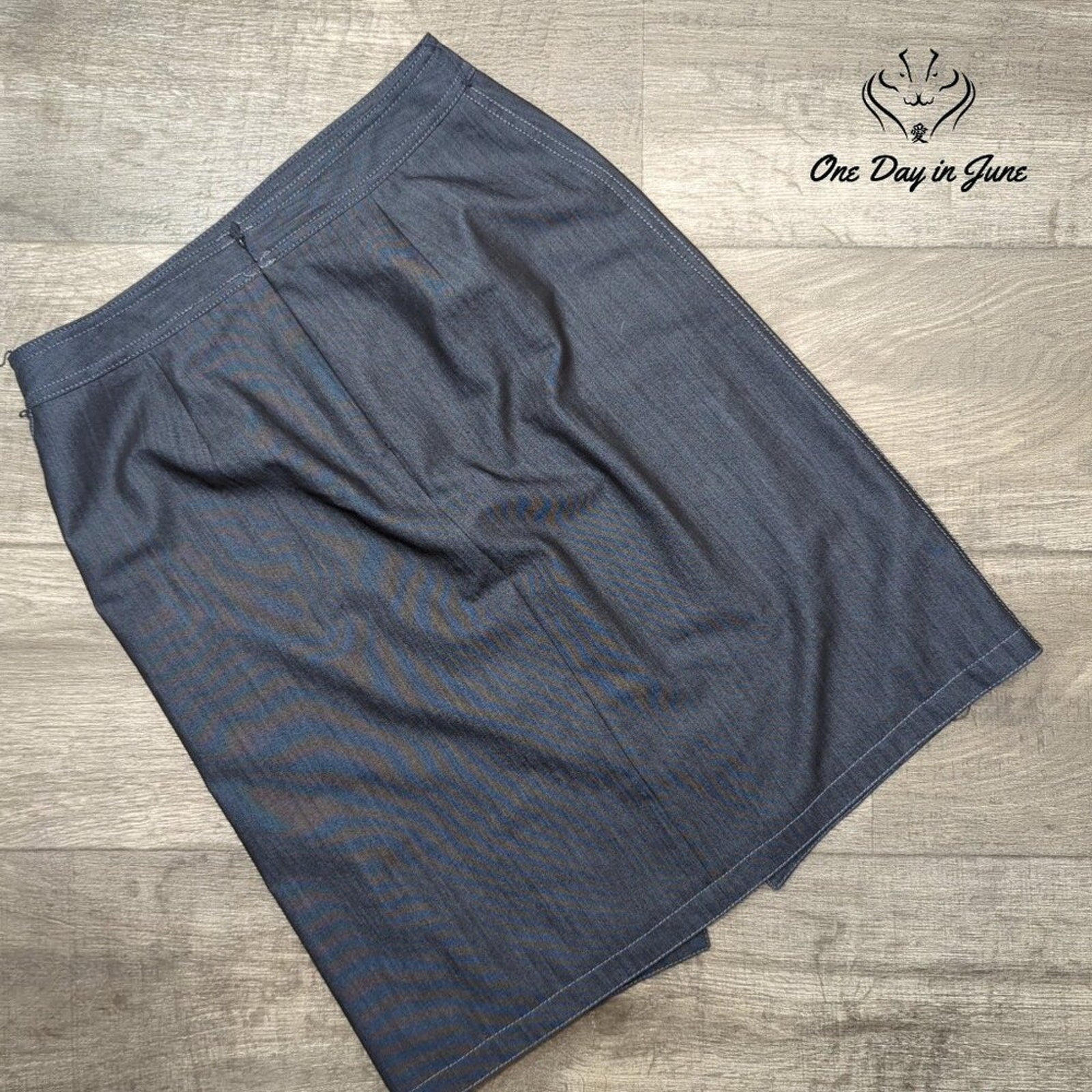 Elevate your sartorial elegance with this exquisite blue pencil skirt by DKNY. Immaculately crafted from a refined blend of fabrics, it offers both sophistication and comfort, making it a pristine addition to any discerning lady's wardrobe. An epitome of grace in like-new condition, it promises to enchant and impress with every wear.