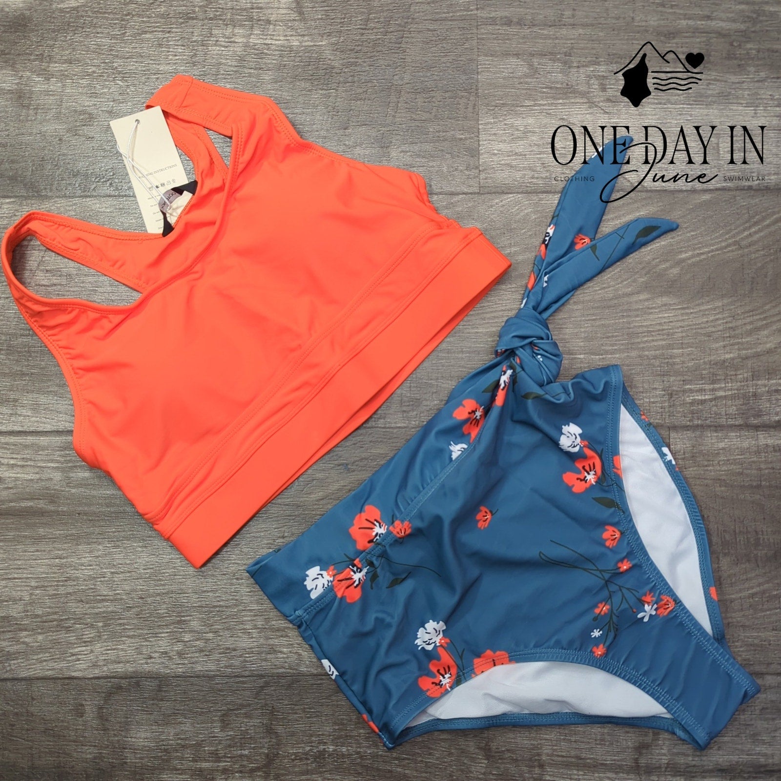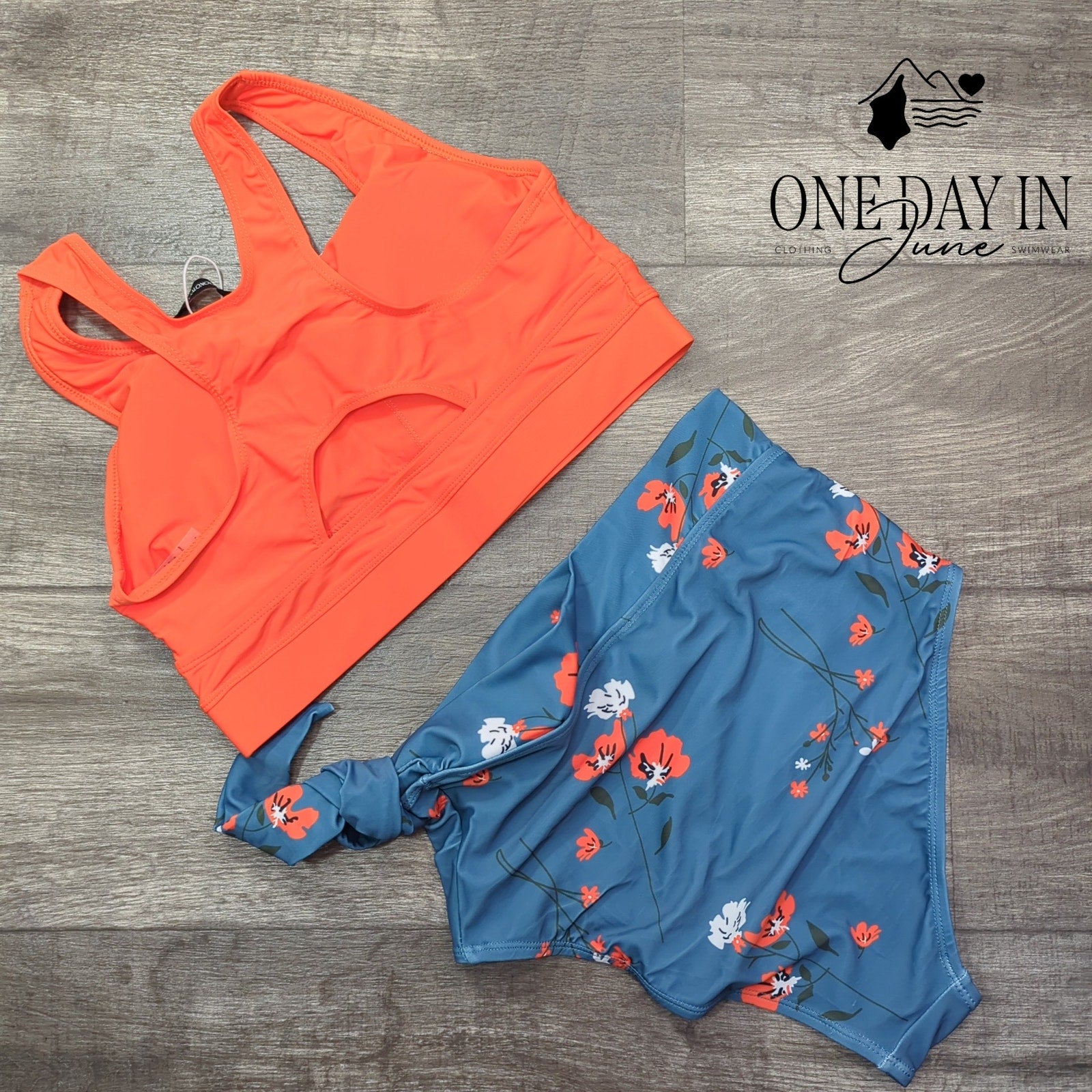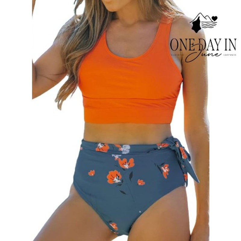 This bright orange bikini set will make you glow, with a crop top and high waist that steal the show! Made with stretchy soft fabric that moves and bends, this swimsuit brings summer fun that never ends!