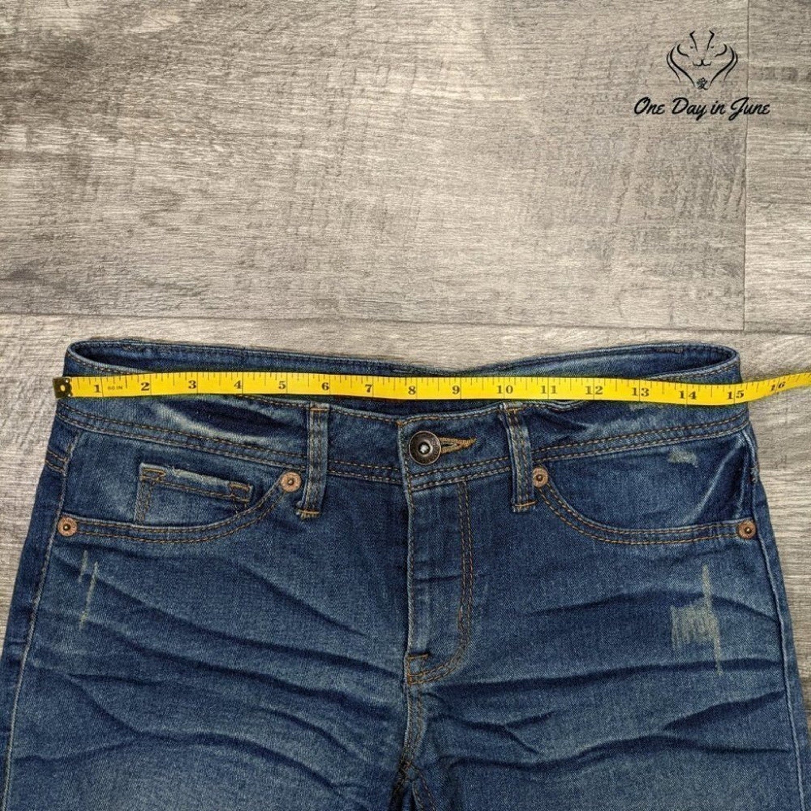 A most agreeable pair of cropped jeans in a pleasing shade of blue, fashioned by Domaine with a flattering silhouette that shall prove most becoming to the discerning young lady. The fabric, a sensible blend of cotton with just the proper touch of stretch, ensures both comfort and elegance for one's daily pursuits. These gently loved jeans possess that essential quality of ease which makes them suitable for morning calls and afternoon promenades alike.
