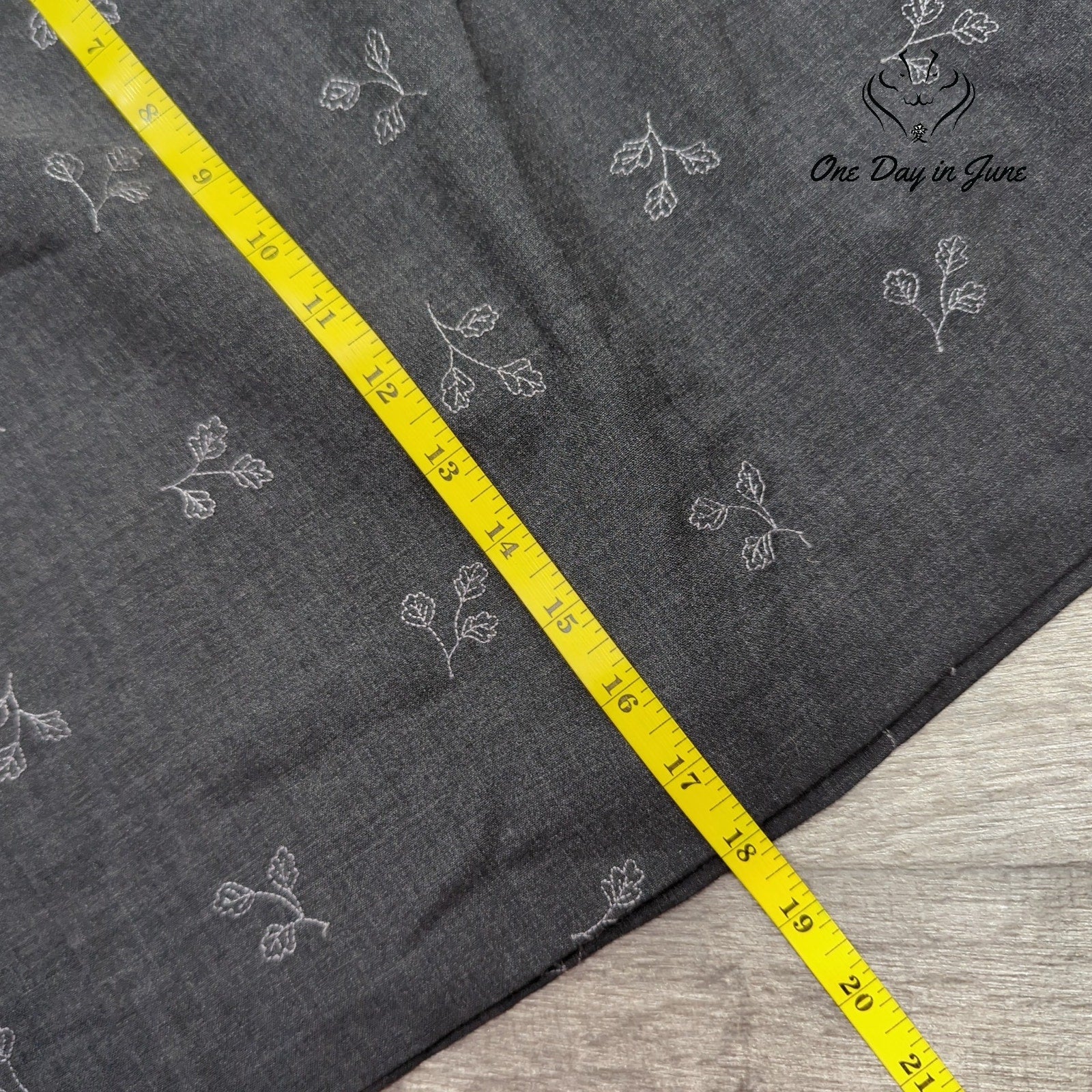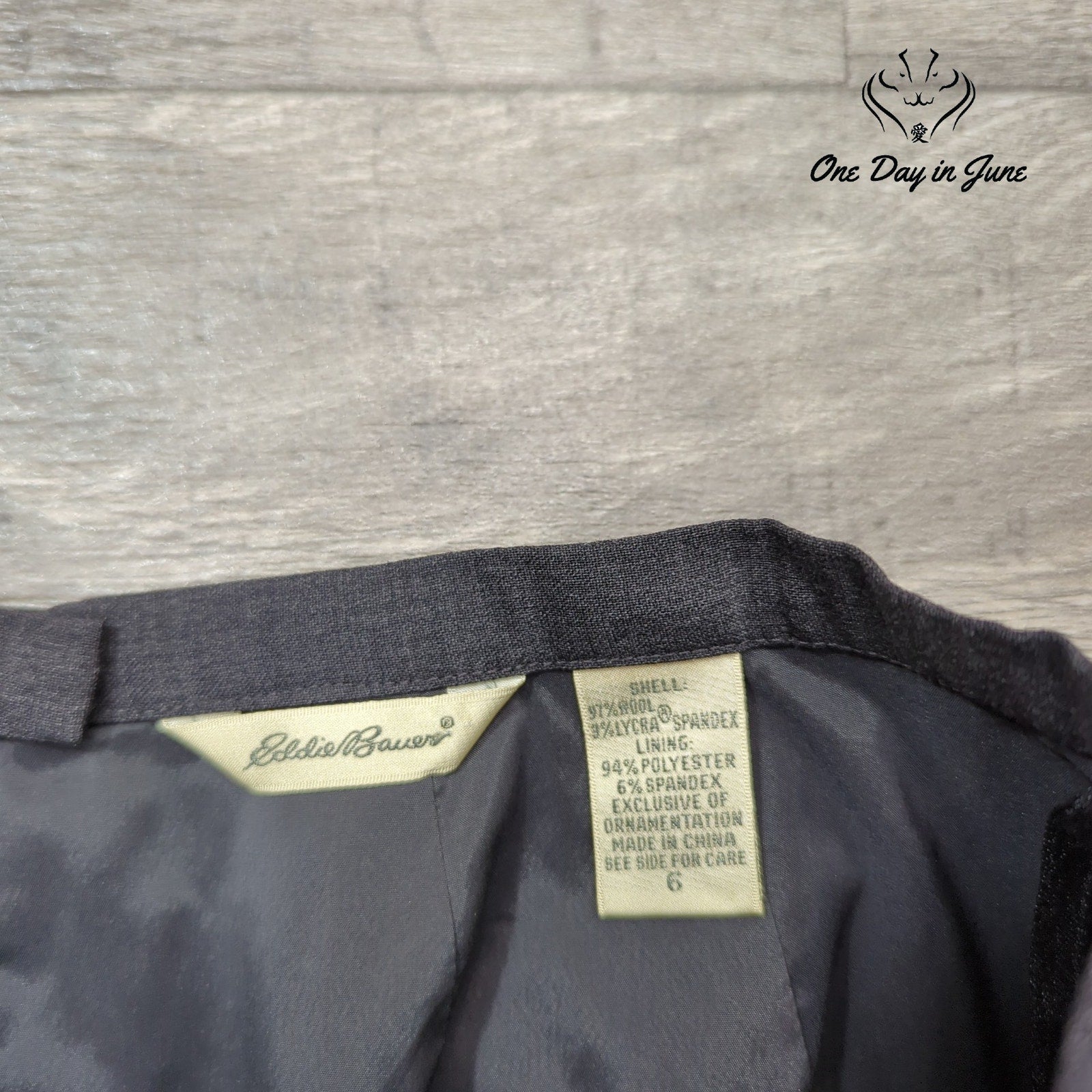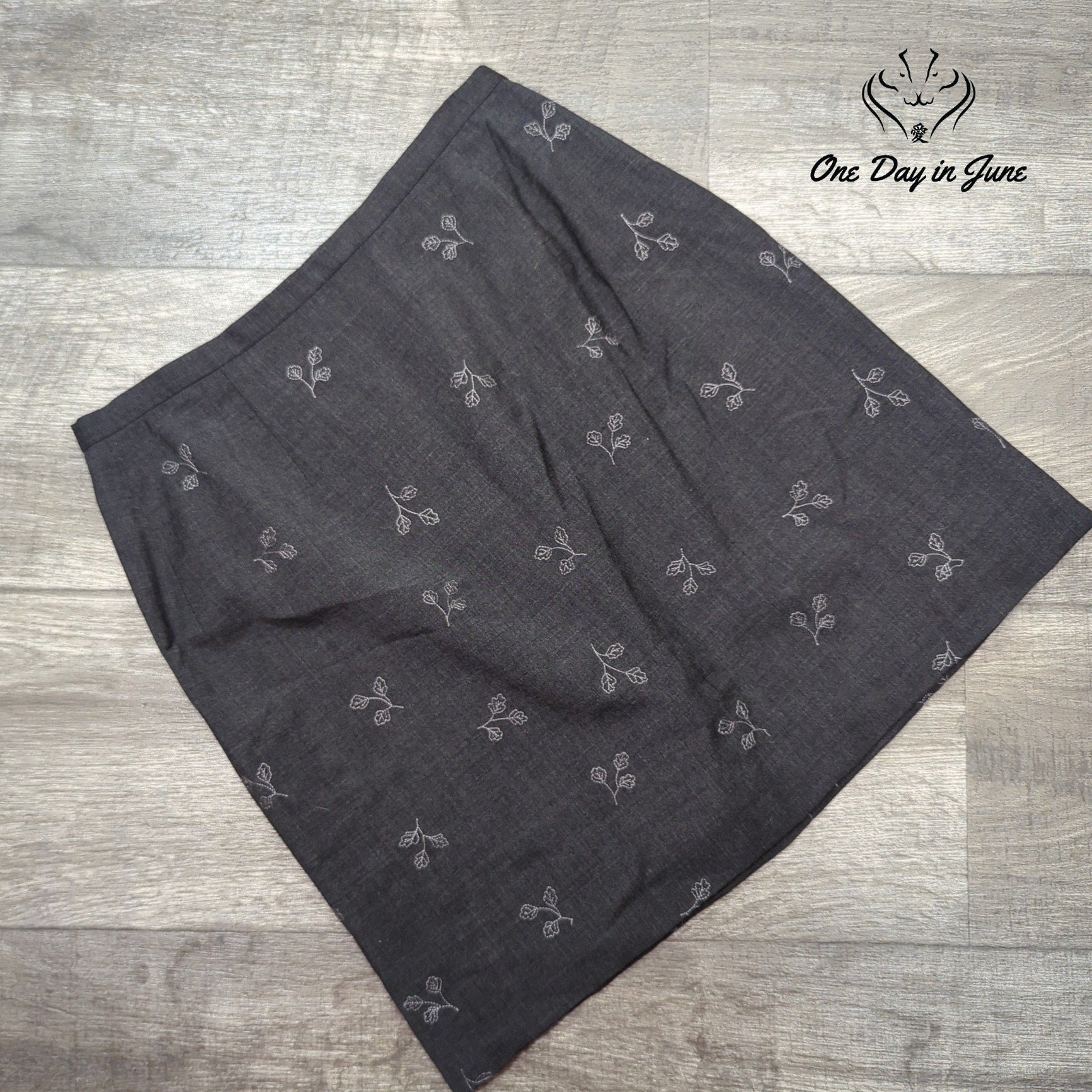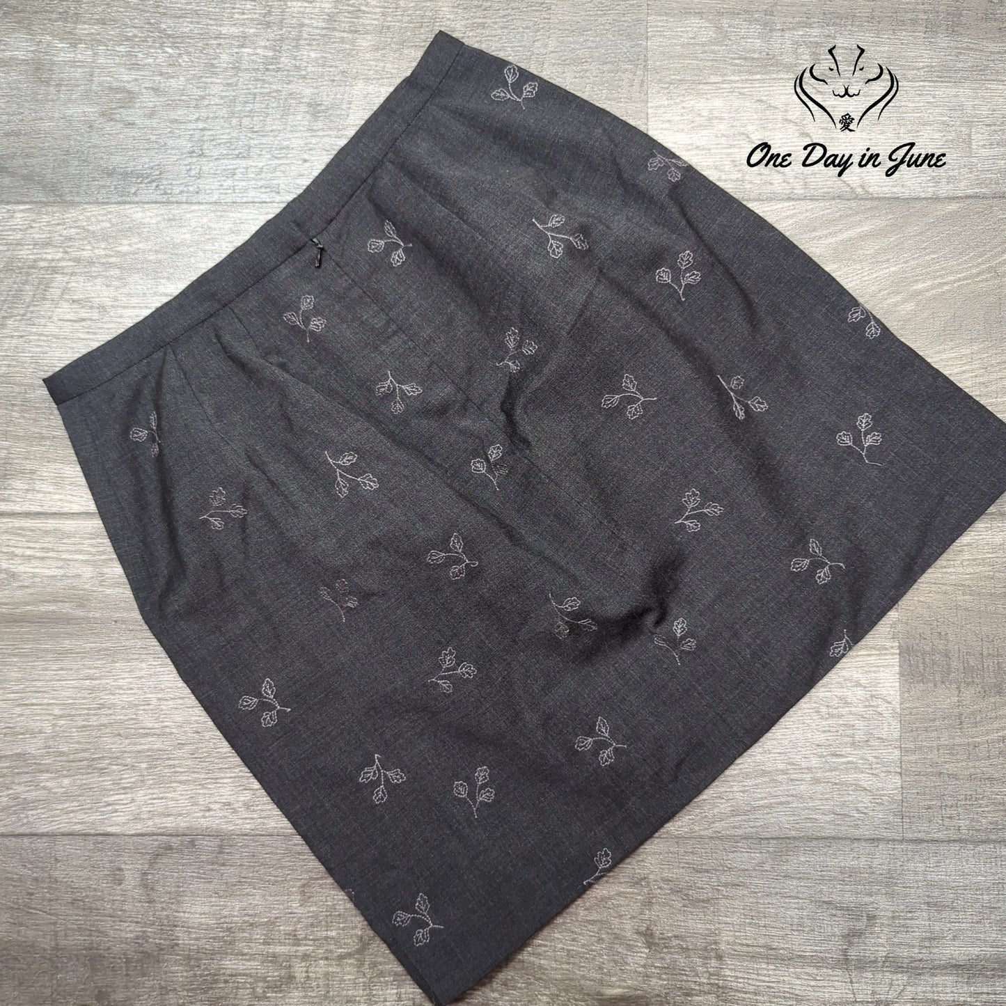 Oh, the floral delight that awaits your sight! This Eddie Bauer skirt, grey and wool, will make you feel cool and keep you warm when the weather's not hot, it's truly a versatile lot.
