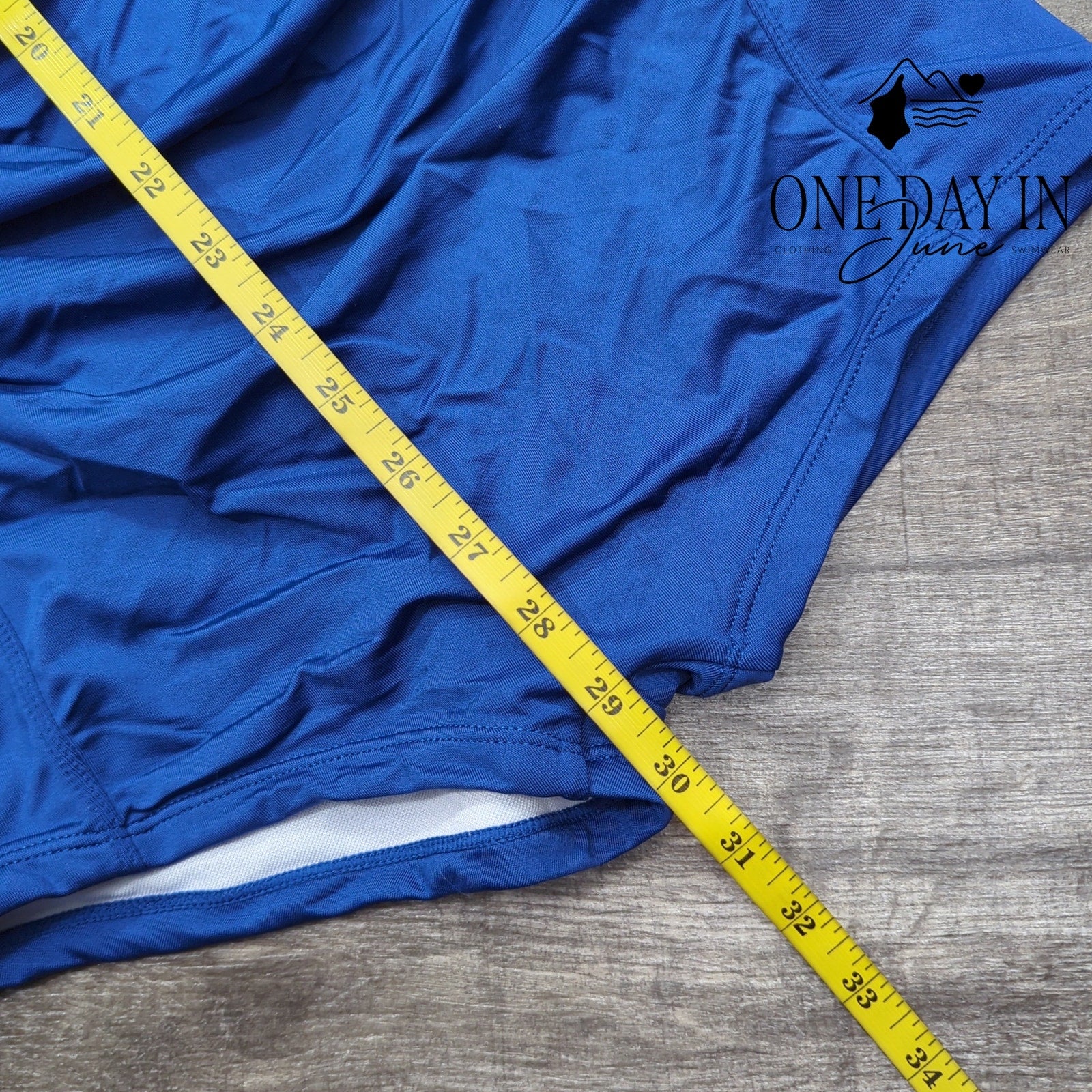 A most charming halter one-piece in a delightful shade of blue, perfectly suited for the discerning lady who wishes to cut an elegant figure by the seaside. The flattering silhouette speaks to both comfort and propriety, crafted from a supple blend that moves as gracefully as one might hope. Indeed, it is a swimsuit that would not look amiss gracing the waters of the finest bathing establishments.