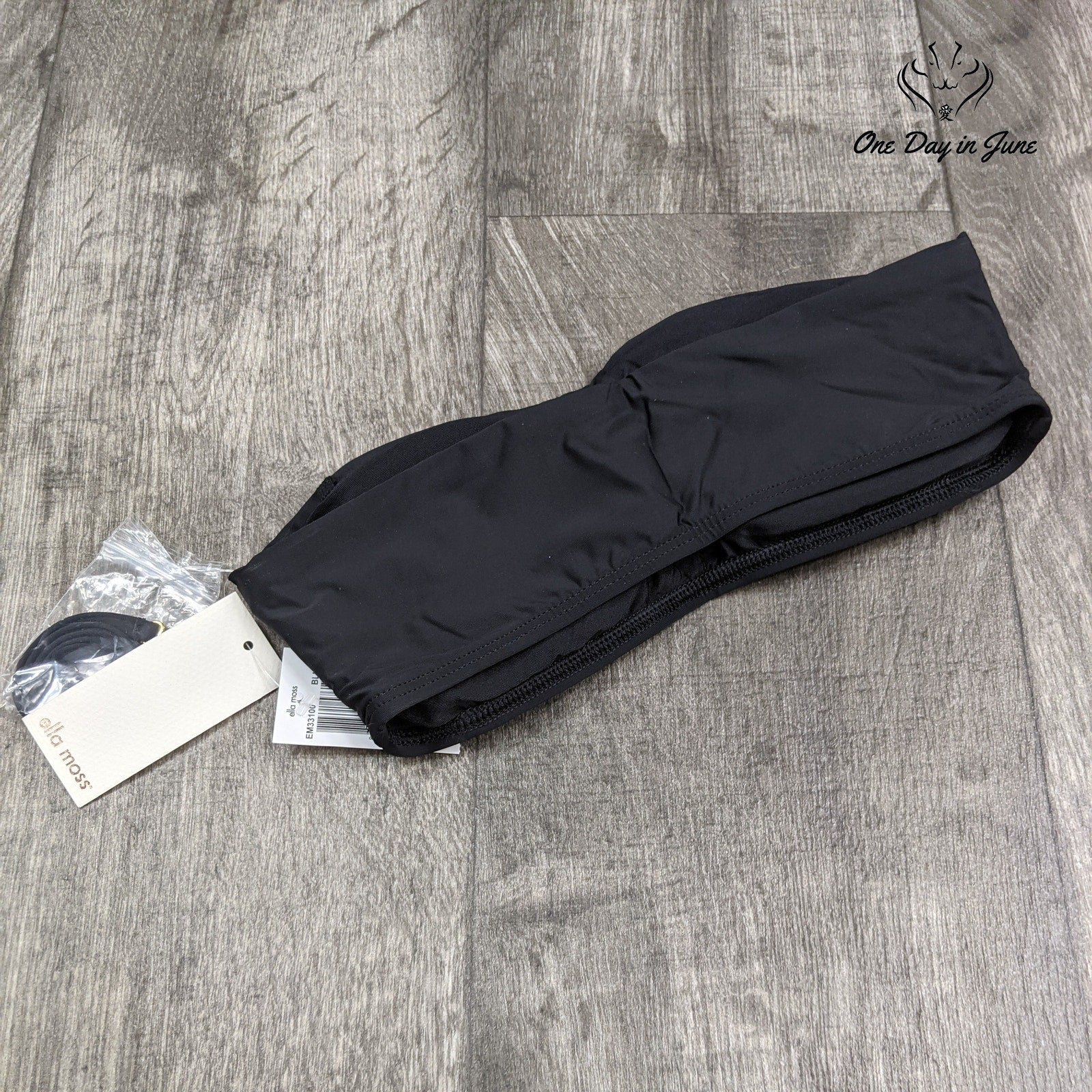 A savage journey into the heart of aquatic fashion, this Ella Moss bandeau bikini top plunges you into a swirling vortex of sleek black elegance. Like a midnight siren's call, it beckons you to dive headlong into chlorine-laced waters, daring you to embrace the primal allure of sun-soaked poolsides and sand-strewn beaches with reckless abandon.