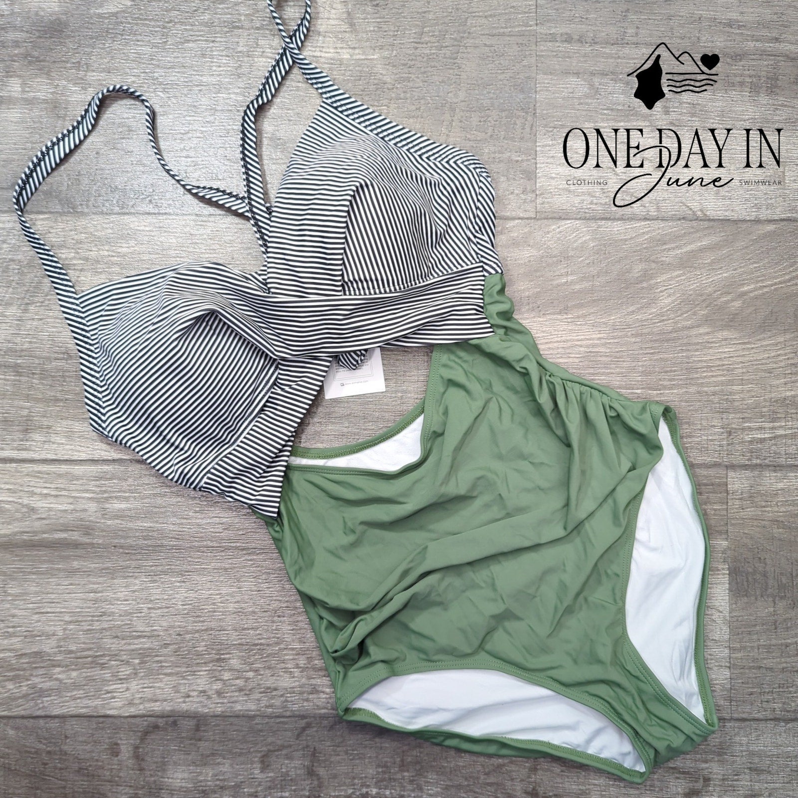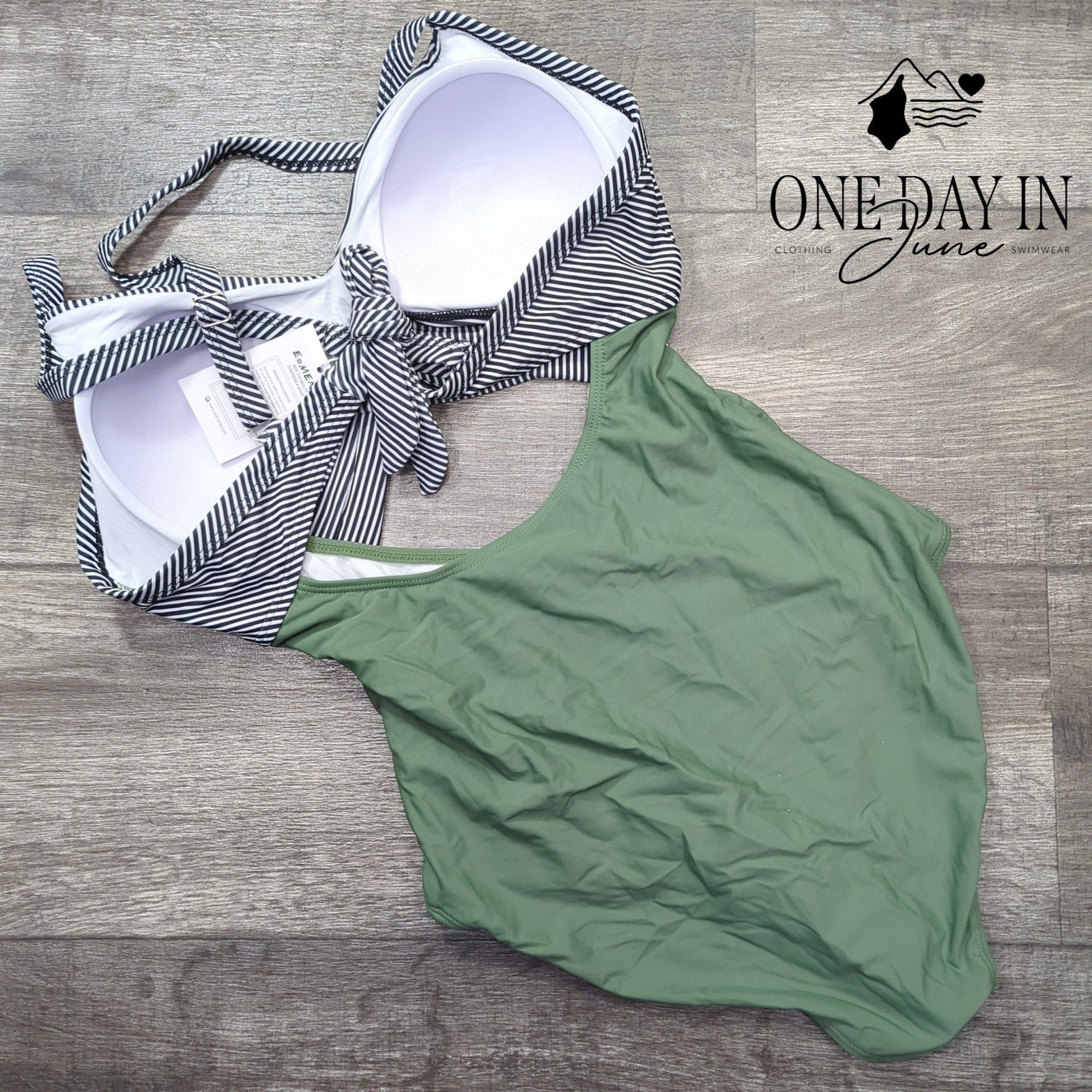 This emerald beast of a swimsuit cuts through the waves like a fever dream made flesh, with its cross-front design creating strategic cutouts that blur the lines between swimwear and pure aquatic rebellion. The polyester-spandex blend stretches and moves like liquid mercury against skin, transforming any pool deck into a stage for summer madness. Brand new and ready to unleash chaos upon unsuspecting beaches, this green machine promises to turn every swim session into an adventure worth remembering.