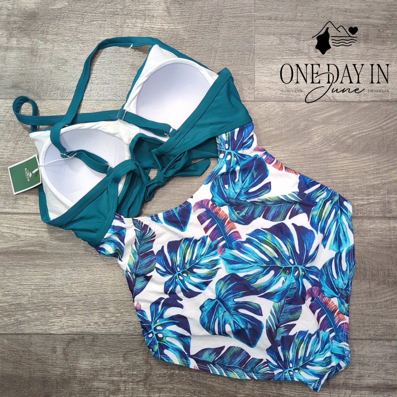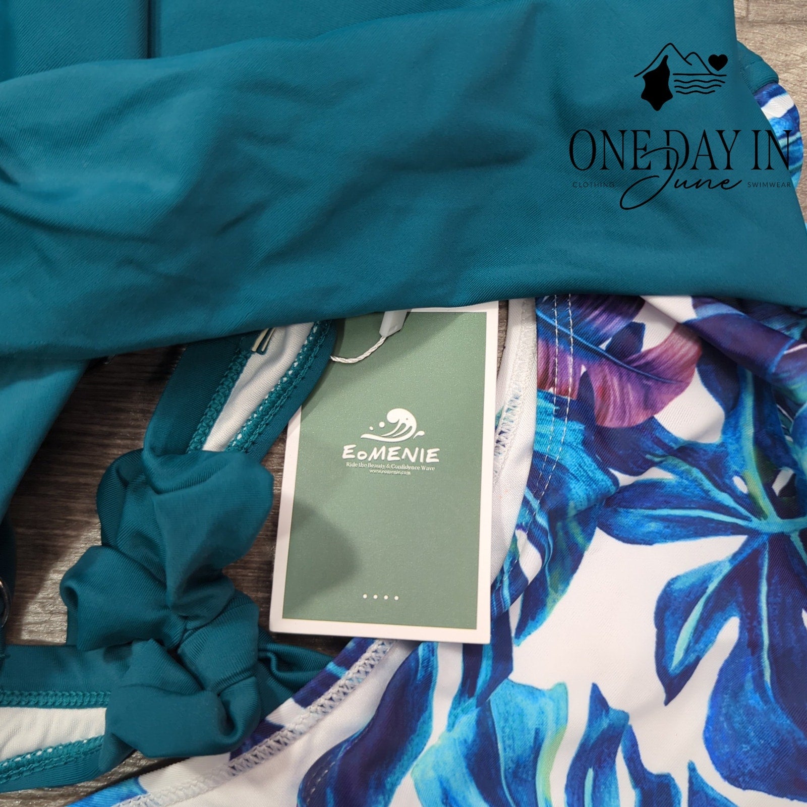 Eomenie Cross Front Cut Out Tie Back One Piece Swimsuit Size XL
