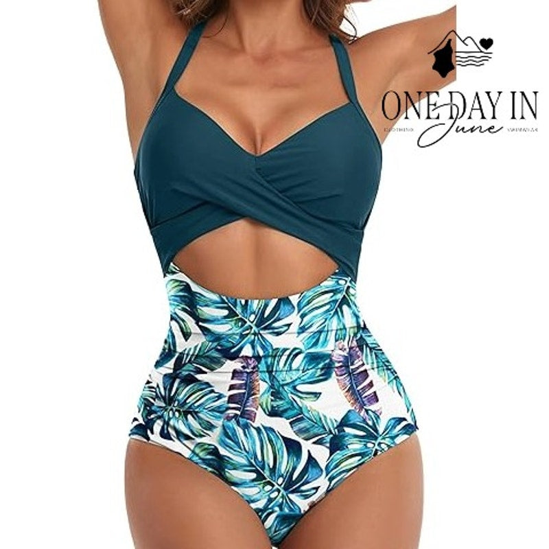 Oh my stars, what a suit so divine, with a cross-front cutout that's simply sublime! Tie it up in the back with a bow oh-so-neat, this black beauty will make your beach look complete!