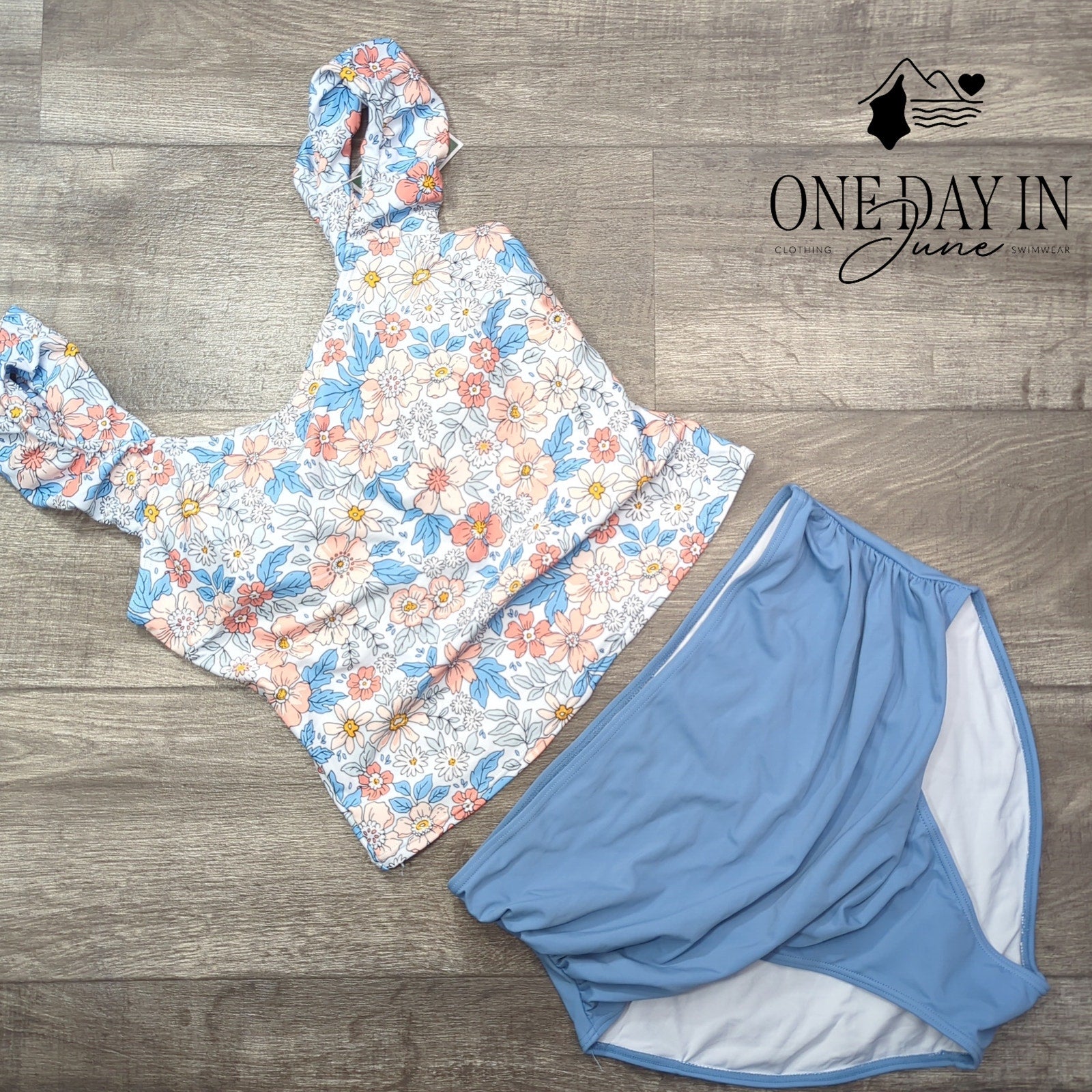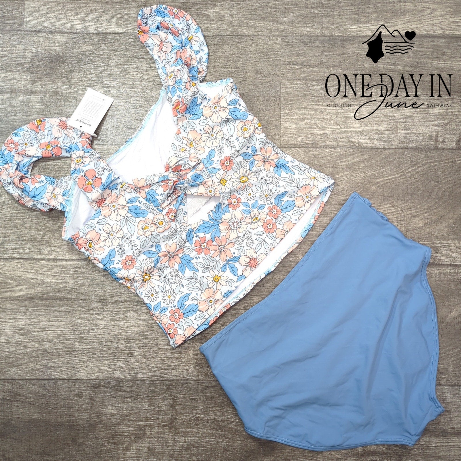 Eomenie Floral High Waist Ruffle Shoulder Tankini Swimsuit Size XL