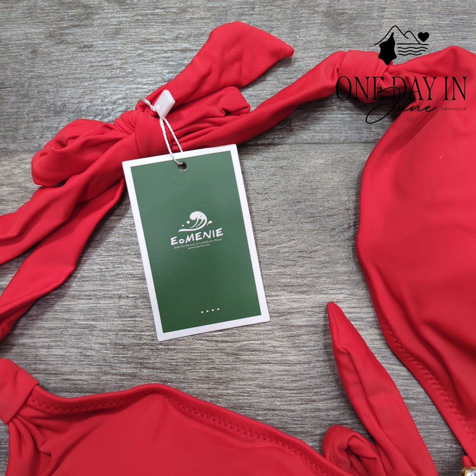 Tags: #EomeneSwimsuits #RedSwimwear #HalterOnepiece
