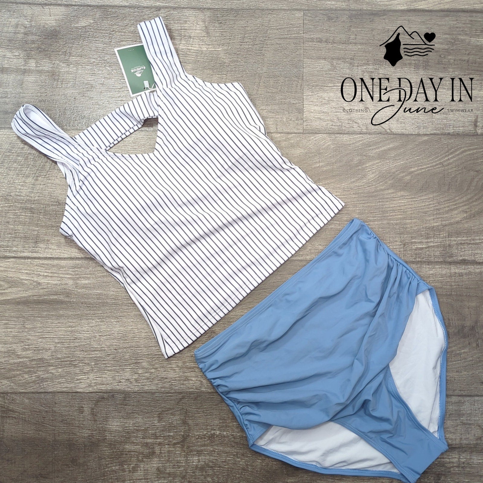 This splendid blue tankini will make you feel so fine, with high waist styling that's truly divine! Made with stretchy soft fabric that moves as you play, perfect for swimming on any sunny day!