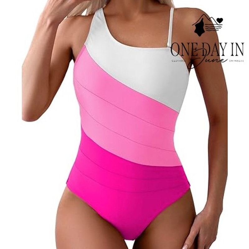 This pink one-shoulder wonder is quite a delight, with stretchy soft fabric that fits just right! A brand new swimsuit that's ready for fun, perfect for splashing in water and sun!