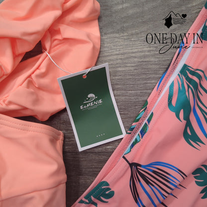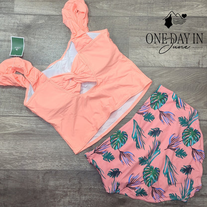 Eomenie Plus Size Ruffle Shoulder Tankini Swimsuit Size 2XL