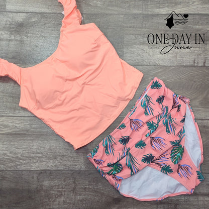 This orange delight with ruffles so bright will make your beach day oh-so-right! A tankini so fine with shoulders divine, you'll splash and you'll dash looking simply sublime!