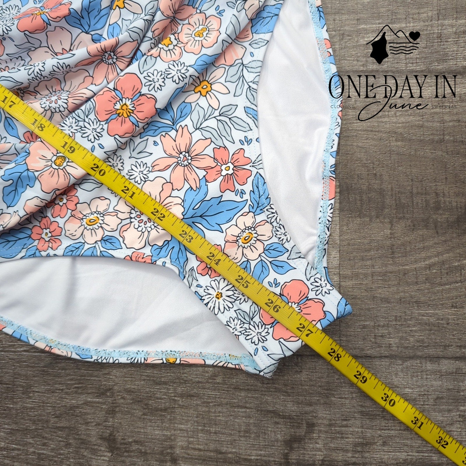 A most charming one-piece confection in a delightful shade of blue, designed with the most thoughtful ruffle details adorning the shoulders to create an air of feminine elegance. The ingenious construction provides gentle tummy control, ensuring a most flattering silhouette that would make any lady feel quite confident during her aquatic pursuits. Crafted from a blend of polyester and spandex, this delightful piece promises both comfort and durability for all manner of seaside adventures.