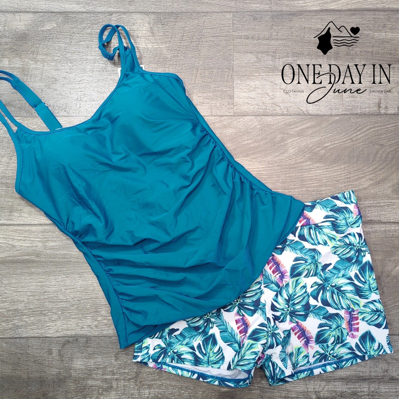 Eomenie Tropical Boyshort Tankini Swimsuit Size L